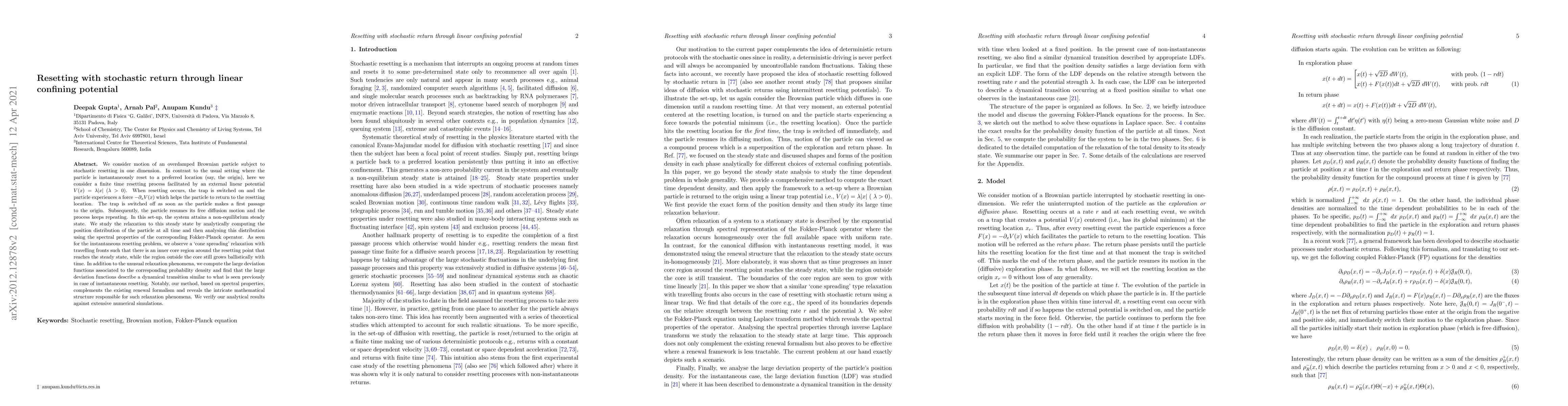 This research investigates the dynamics of an overdamped Brownian particle subject to stochastic resetting influenced by a linear confining potential. Unlike instantaneous resetting, here the potential aids the particle's return to the resetting location before switching off, leading to a non-equilibrium steady state. Analytical computation of the position distribution reveals a "cone spreading" relaxation process, complemented by spectral analysis of the Fokker-Planck operator, and verified by numerical simulations.
