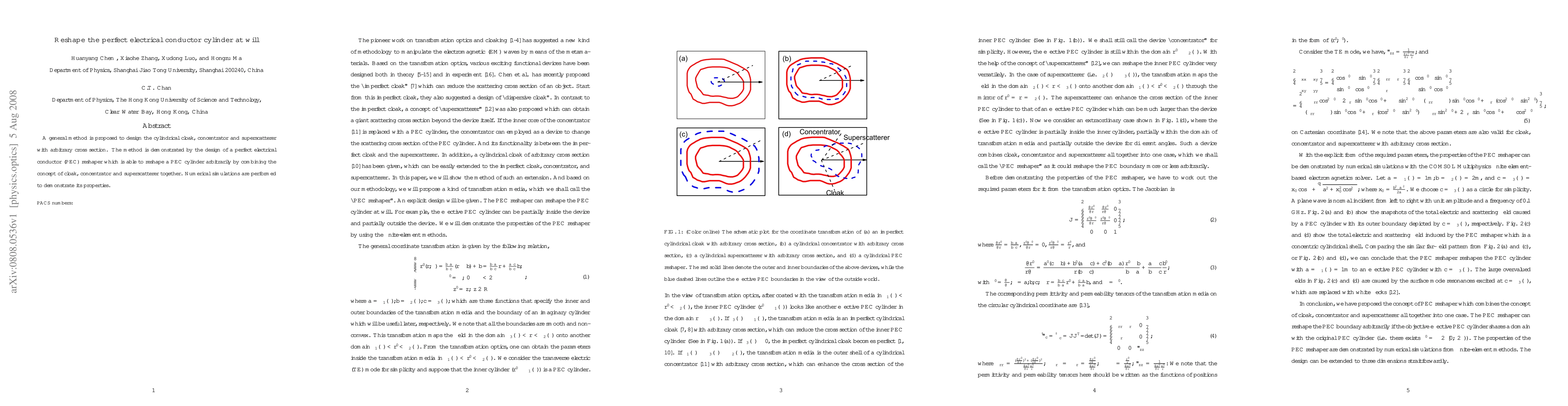 Researchers developed a method to design cylindrical objects that can reshape perfect electrical conductor cylinders at will, using concepts of cloaks, concentrators, and superscatterers.
