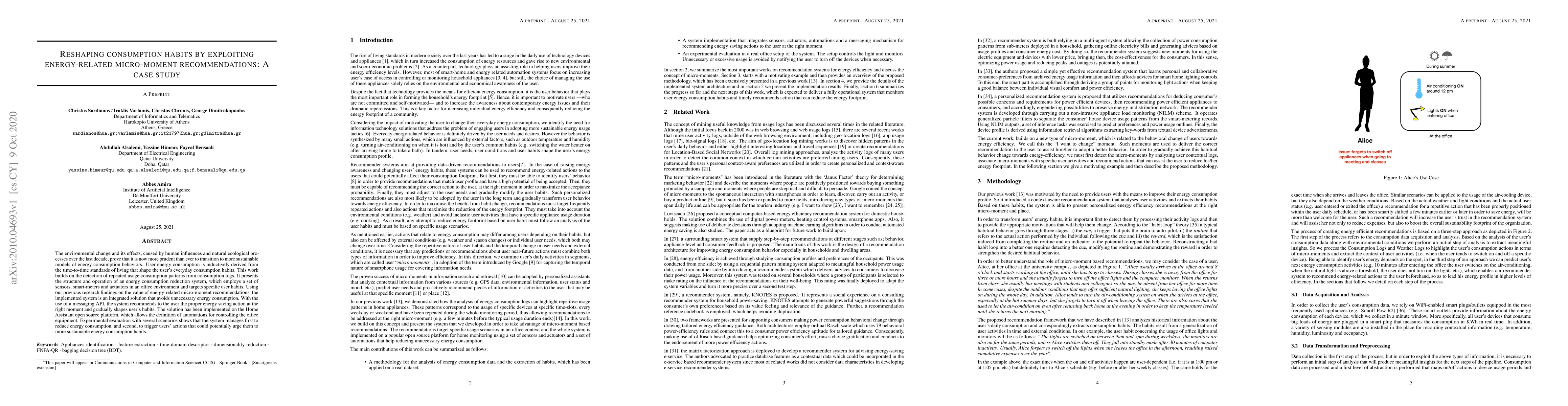 This research introduces an energy-saving system utilizing sensors, smart-meters, and actuators in an office setting to identify and modify energy-consuming habits. By providing timely, micro-moment recommendations via a messaging API, the system successfully reduces energy consumption and encourages users towards sustainable practices, as demonstrated through experimental evaluations on the Home Assistant platform.