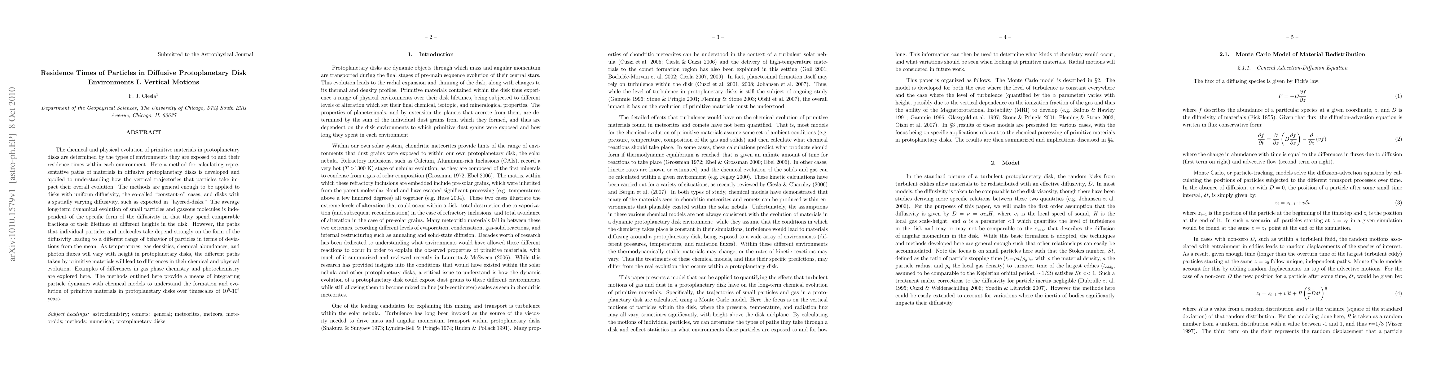 The chemical and physical evolution of primitive materials in protoplanetary disks are determined by the types of environments they are exposed to and their residence times within each environment. Here a method for calculating representative paths of materials in diffusive protoplanetary disks is developed and applied to understanding how the vertical trajectories that particles take impact their overall evolution. The methods are general enough to be applied to disks with uniform diffusivity, the so-called "constant-$\alpha$" cases, and disks with a spatially varying diffusivity, such as expected in "layered-disks." The average long-term dynamical evolution of small particles and gaseous molecules is independent of the specific form of the diffusivity in that they spend comparable fractions of their lifetimes at different heights in the disk. However, the paths that individual particles and molecules take depend strongly on the form of the diffusivity leading to a different range of behavior of particles in terms of deviations from the mean. As temperatures, gas densities, chemical abundances, and photon fluxes will vary with height in protoplanetary disks, the different paths taken by primitive materials will lead to differences in their chemical and physical evolution. Examples of differences in gas phase chemistry and photochemistry are explored here. The methods outlined here provide a means of integrating particle dynamics with chemical models to understand the formation and evolution of primitive materials in protoplanetary disks over timescales of $10^5$-$10^6$ years.