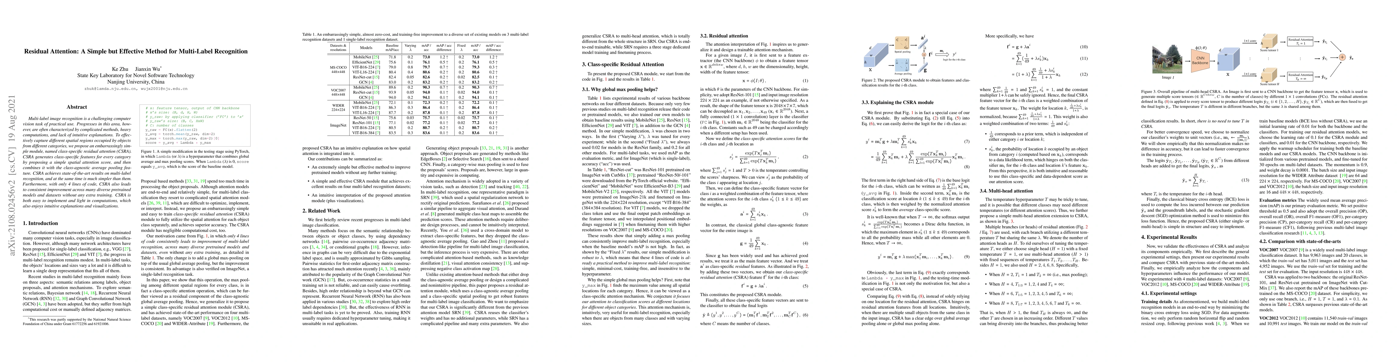 Researchers propose a simple method called class-specific residual attention (CSRA) to improve multi-label image recognition accuracy without complex computations or heavy feature engineering. CSRA achieves state-of-the-art results with only 4 lines of code and is easy to implement.