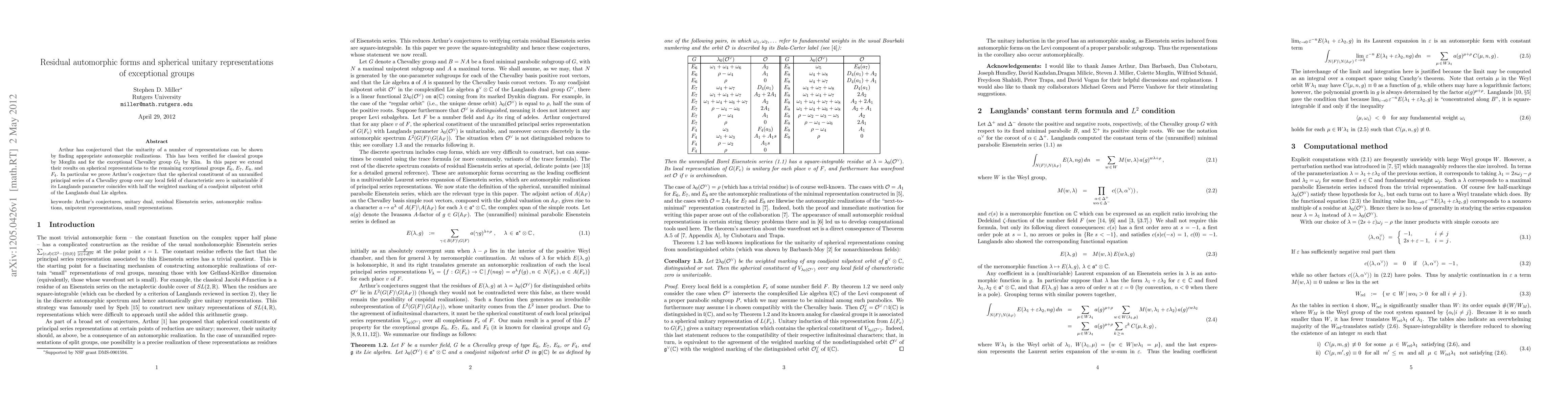 The paper extends previous results on spherical representations of exceptional groups to E_6, E_7, E_8, and F_4, verifying Arthur's conjecture that certain representations are unitarizable under specific conditions.