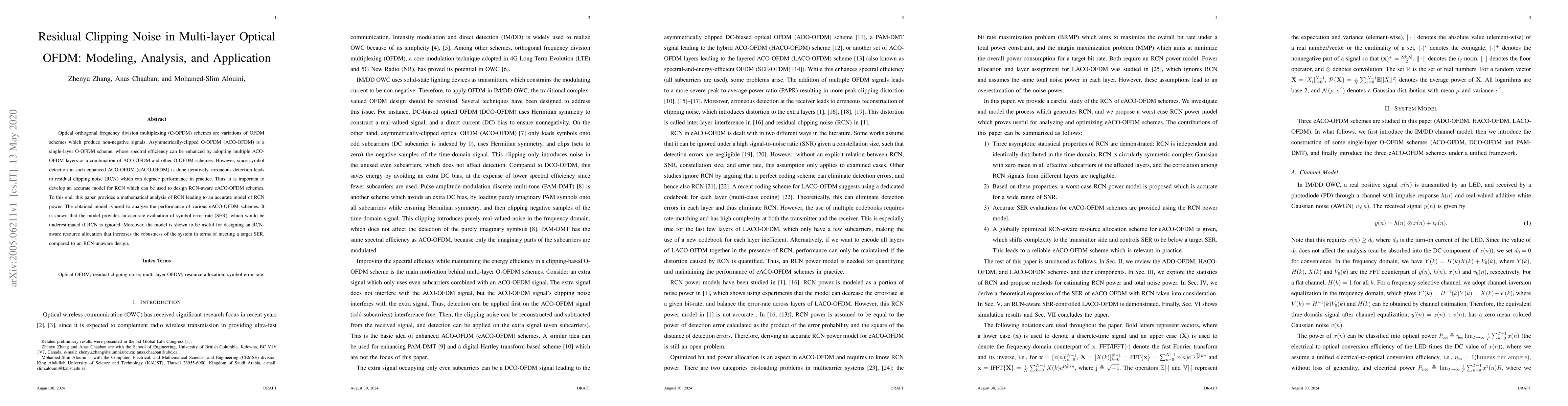 This paper develops a mathematical model for residual clipping noise (RCN) in enhanced asymmetrically-clipped optical OFDM (eACO-OFDM) schemes, demonstrating its utility in accurately evaluating symbol error rates and guiding RCN-aware resource allocation to improve system robustness.