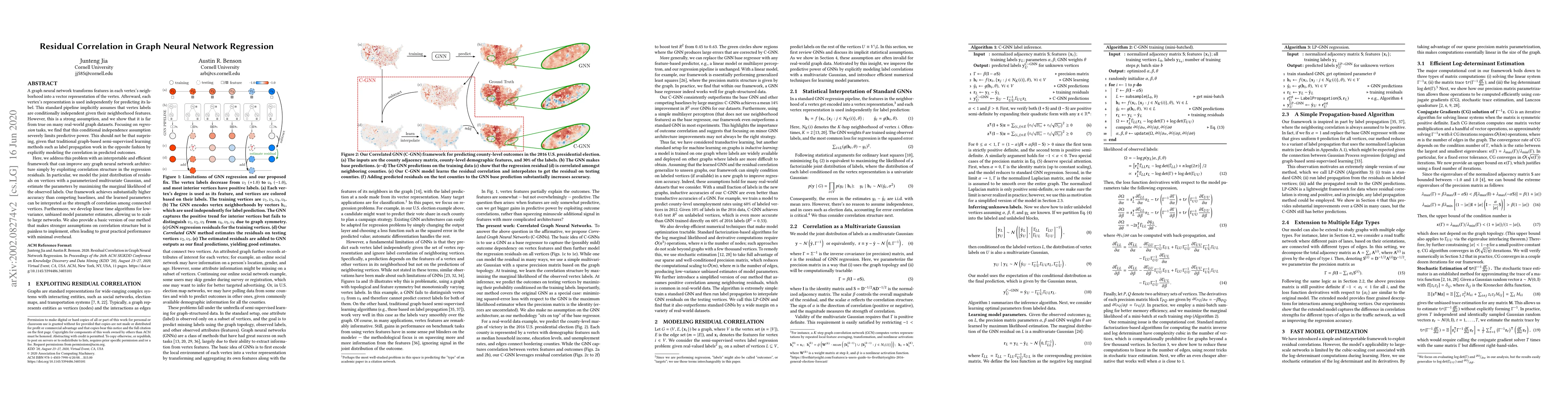This paper proposes a framework to enhance graph neural networks for regression tasks by modeling residual correlations among vertices, demonstrating improved accuracy over baselines and providing scalable, interpretable solutions. The method leverages a multivariate Gaussian to capture joint residual distributions, achieving higher predictive power by addressing the conditional independence assumption.