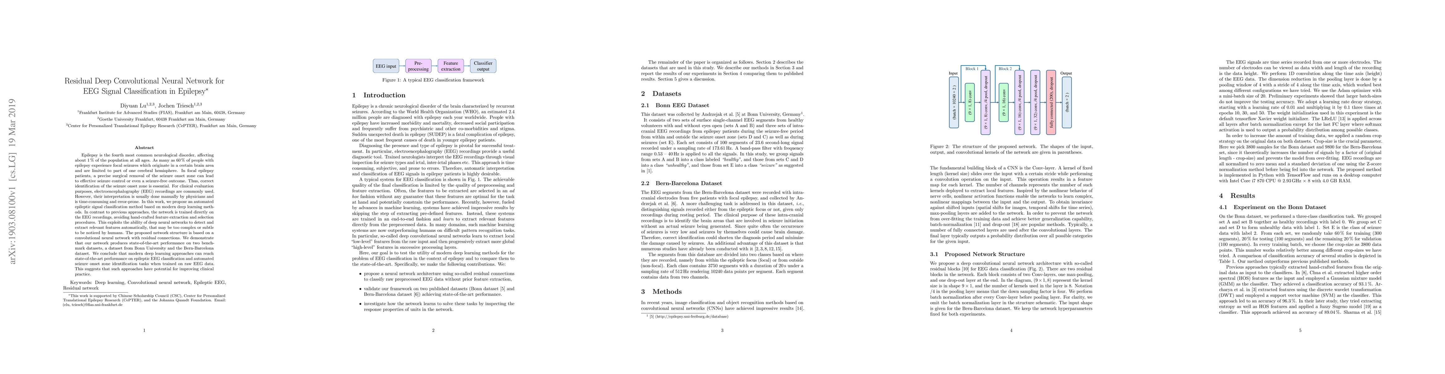 This paper proposes a residual deep convolutional neural network for automated classification of EEG signals in epilepsy, achieving state-of-the-art performance on benchmark datasets. The method eliminates the need for manual feature extraction, leveraging the network's ability to automatically detect relevant features for seizure onset zone identification.