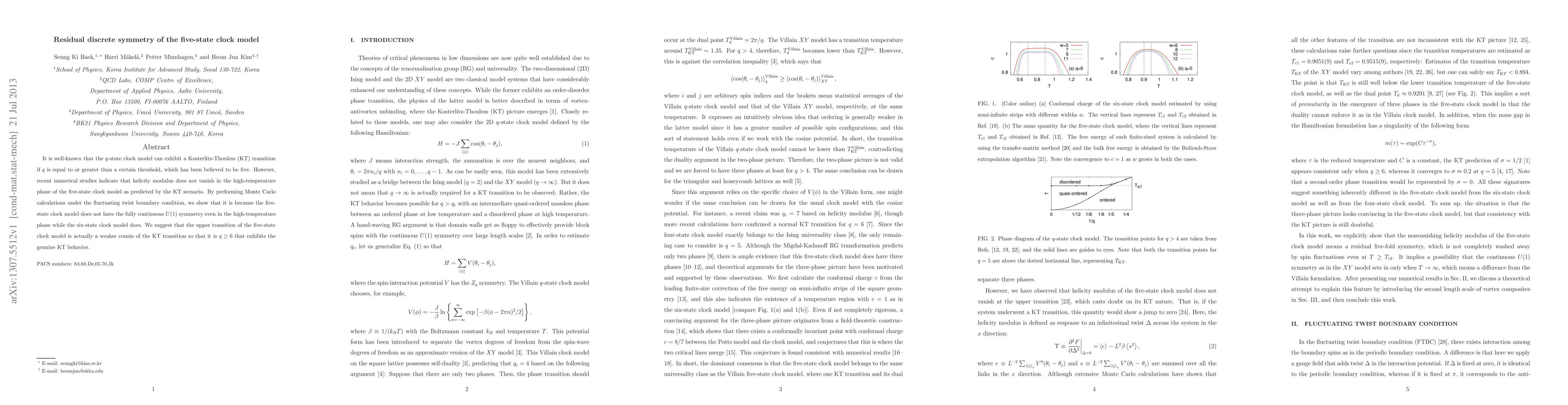 This paper demonstrates that the five-state clock model does not fully exhibit Kosterlitz-Thouless transition behavior due to a residual discrete symmetry, unlike the six-state model, suggesting that genuine KT behavior starts at $q \ge 6$.