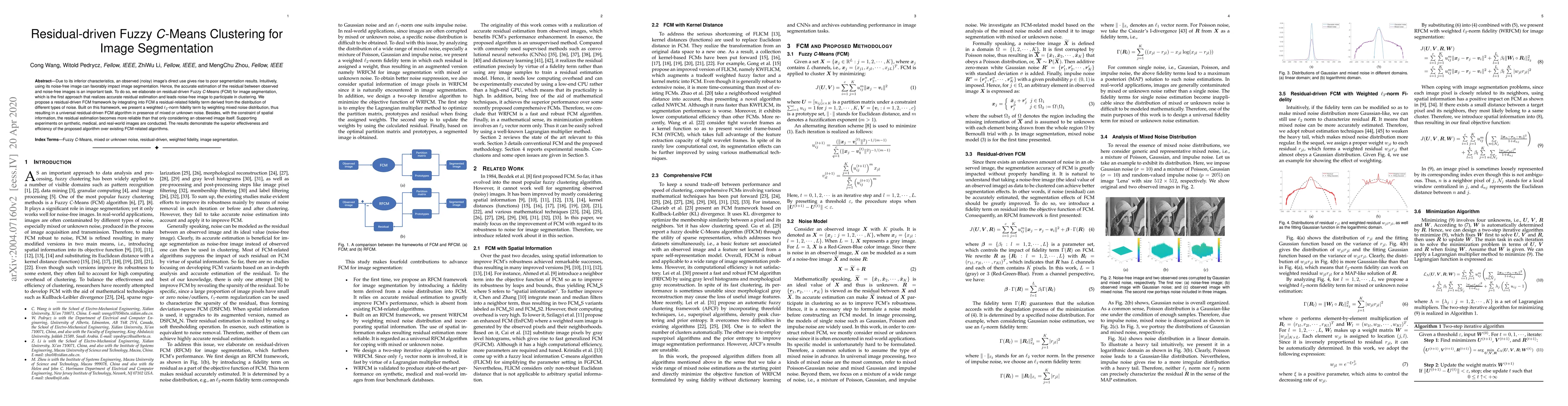 Due to its inferior characteristics, an observed (noisy) image's direct use gives rise to poor segmentation results. Intuitively, using its noise-free image can favorably impact image segmentation. Hence, the accurate estimation of the residual between observed and noise-free images is an important task. To do so, we elaborate on residual-driven Fuzzy C-Means (FCM) for image segmentation, which is the first approach that realizes accurate residual estimation and leads noise-free image to participate in clustering. We propose a residual-driven FCM framework by integrating into FCM a residual-related fidelity term derived from the distribution of different types of noise. Built on this framework, we present a weighted $\ell_{2}$-norm fidelity term by weighting mixed noise distribution, thus resulting in a universal residual-driven FCM algorithm in presence of mixed or unknown noise. Besides, with the constraint of spatial information, the residual estimation becomes more reliable than that only considering an observed image itself. Supporting experiments on synthetic, medical, and real-world images are conducted. The results demonstrate the superior effectiveness and efficiency of the proposed algorithm over existing FCM-related algorithms.