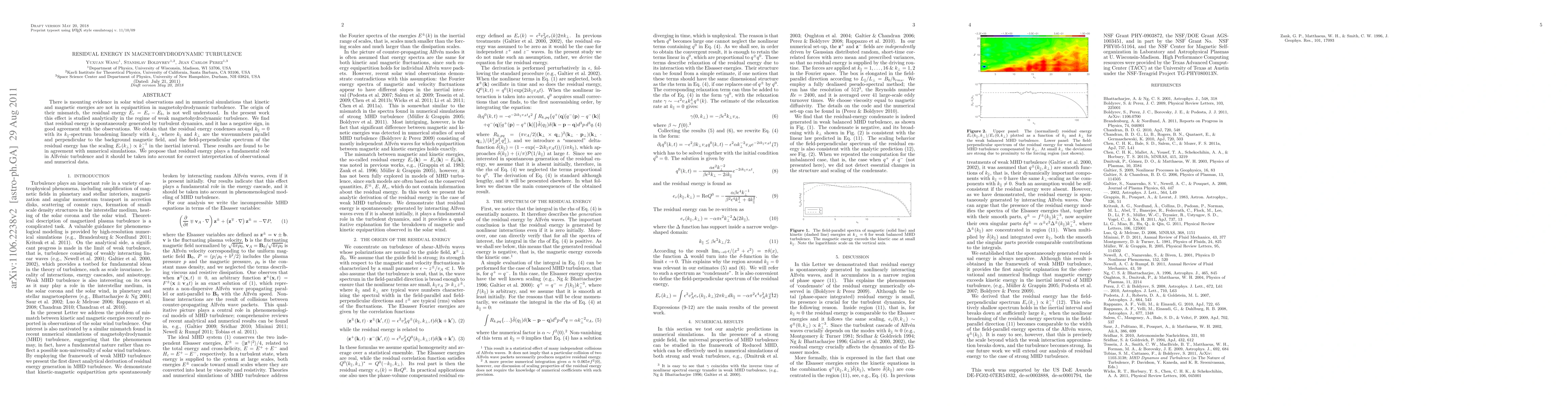 This study analytically investigates the origin of residual energy in magnetohydrodynamic turbulence, finding that it is spontaneously generated by turbulent dynamics and has a negative sign, consistent with observations. The residual energy condenses around k_||=0, with its spectrum scaling as k_perp^{-1} in the inertial interval, suggesting a fundamental role in Alfvenic turbulence.
