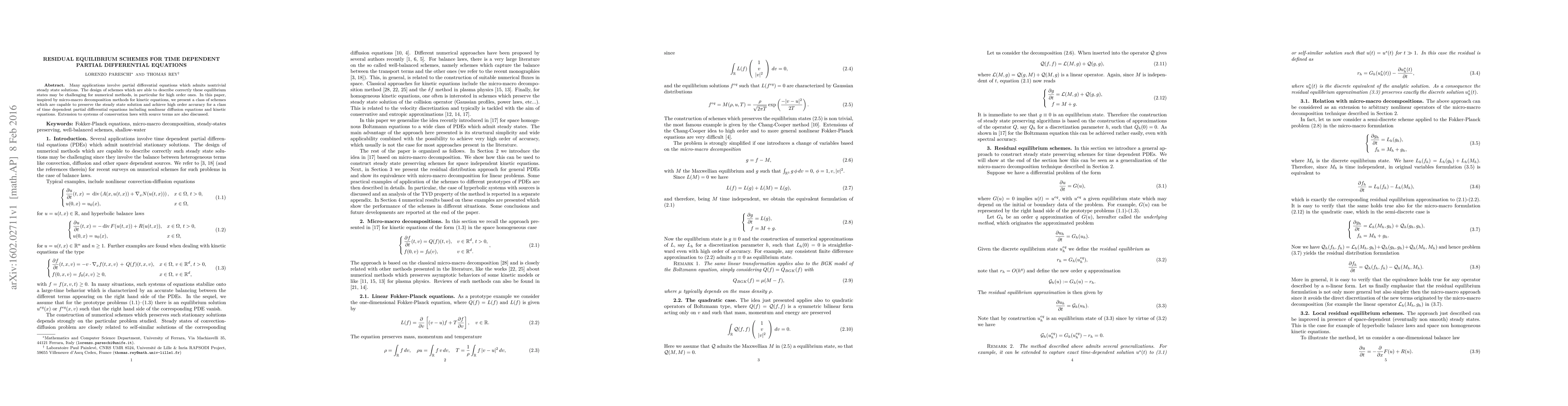This paper introduces residual equilibrium schemes that preserve steady state solutions while achieving high order accuracy for time-dependent partial differential equations, including nonlinear diffusion and kinetic equations. The methods are also extended to systems of conservation laws with source terms.