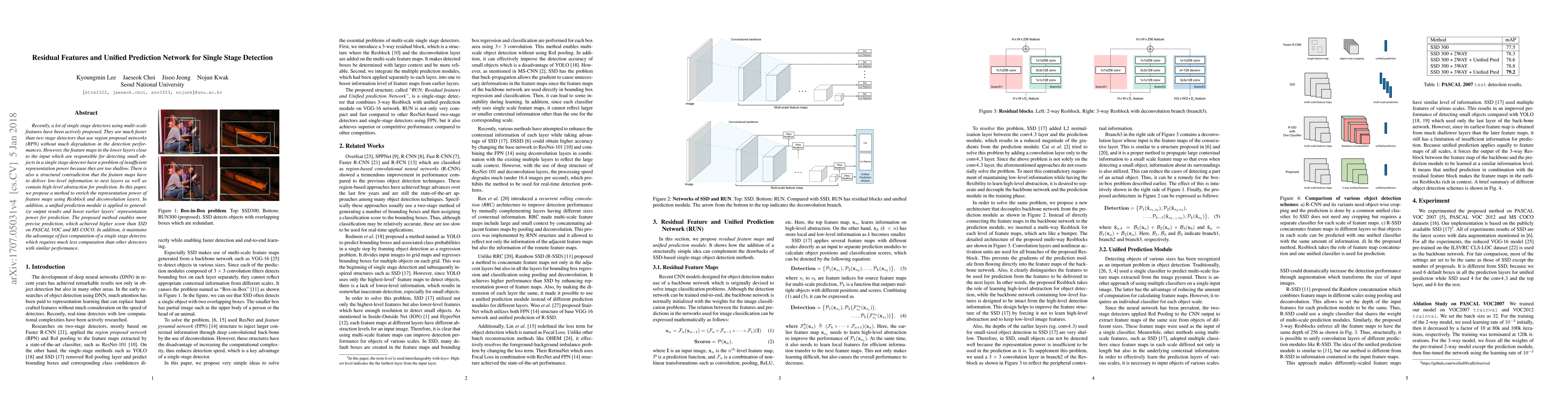 Recently, a lot of single stage detectors using multi-scale features have been actively proposed. They are much faster than two stage detectors that use region proposal networks (RPN) without much degradation in the detection performances. However, the feature maps in the lower layers close to the input which are responsible for detecting small objects in a single stage detector have a problem of insufficient representation power because they are too shallow. There is also a structural contradiction that the feature maps have to deliver low-level information to next layers as well as contain high-level abstraction for prediction. In this paper, we propose a method to enrich the representation power of feature maps using Resblock and deconvolution layers. In addition, a unified prediction module is applied to generalize output results and boost earlier layers' representation power for prediction. The proposed method enables more precise prediction, which achieved higher score than SSD on PASCAL VOC and MS COCO. In addition, it maintains the advantage of fast computation of a single stage detector, which requires much less computation than other detectors with similar performance. Code is available at https://github.com/kmlee-snu/run