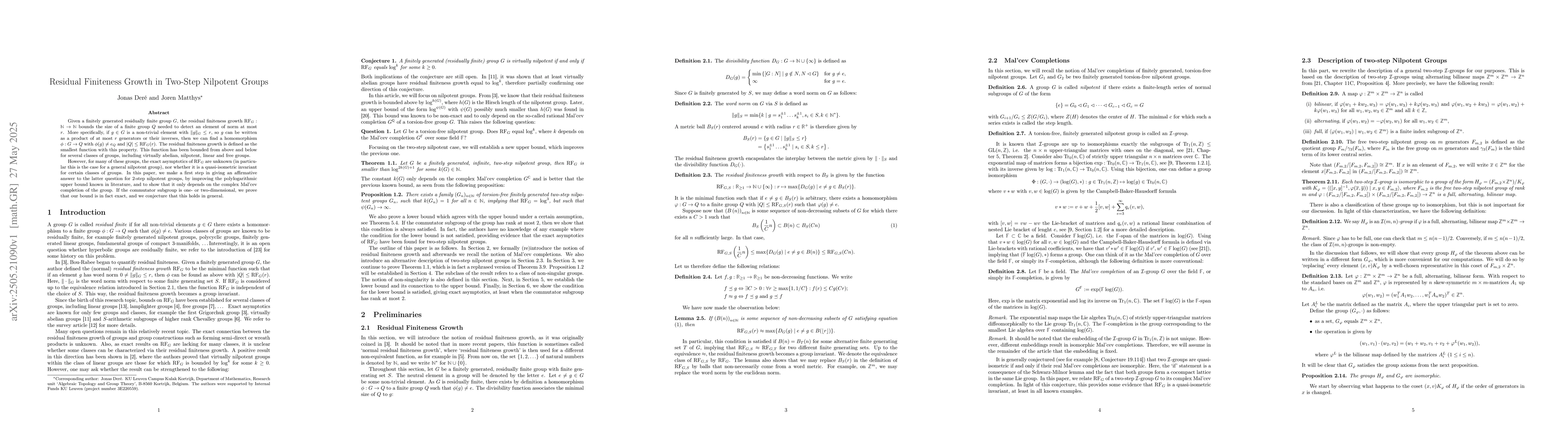 The paper presents a refined upper bound for residual finiteness growth in two-step nilpotent groups and establishes its dependence on the complex Mal'cev completion.