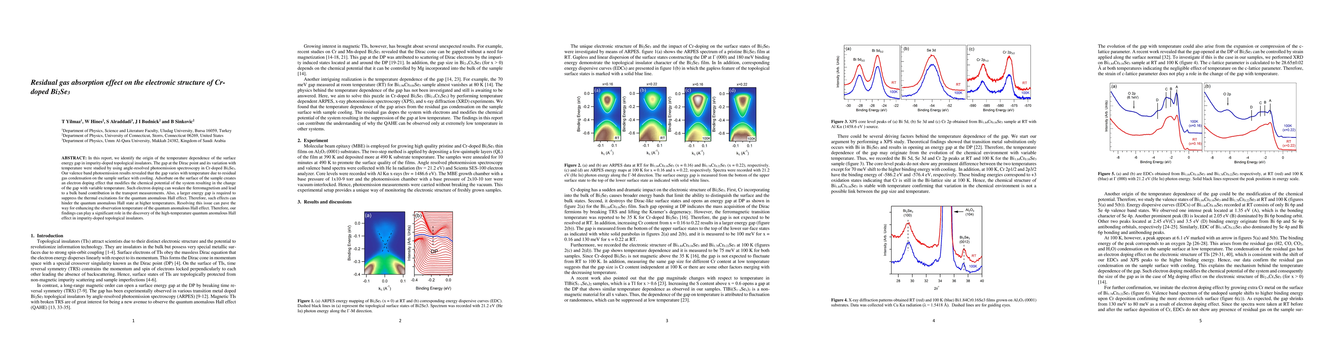 Researchers studied how temperature affects the energy gap in a topological insulator with chromium added to it. They found that cooling the sample causes gas on its surface to condense, altering the material's properties.