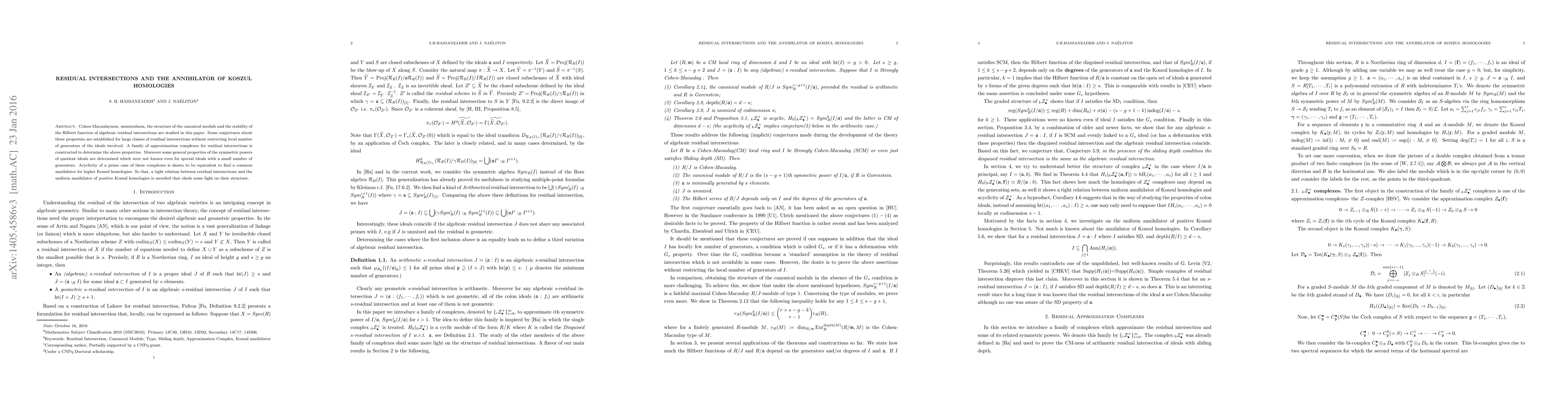 Cohen-Macaulayness, unmixedness, the structure of the canonical module and the stability of the Hilbert function of algebraic residual intersections are studied in this paper. Some conjectures about these properties are established for large classes of residual intersections without restricting local number of generators of the ideals involved. A family of approximation complexes for residual intersections is constructed to determine the above properties. Moreover some general properties of the symmetric powers of quotient ideals are determined which were not known even for special ideals with a small number of generators. Acyclicity of a prime case of these complexes is shown to be equivalent to find a common annihilator for higher Koszul homologies. So that, a tight relation between residual intersections and the uniform annihilator of positive Koszul homologies is unveiled that sheds some light on their structure.