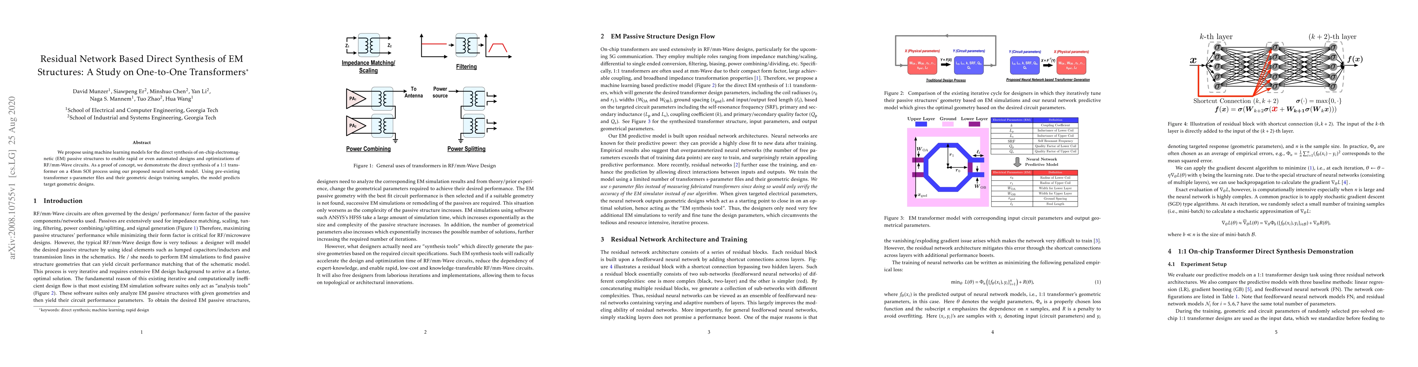 We propose using machine learning models for the direct synthesis of on-chip electromagnetic (EM) passive structures to enable rapid or even automated designs and optimizations of RF/mm-Wave circuits. As a proof of concept, we demonstrate the direct synthesis of a 1:1 transformer on a 45nm SOI process using our proposed neural network model. Using pre-existing transformer s-parameter files and their geometric design training samples, the model predicts target geometric designs.
