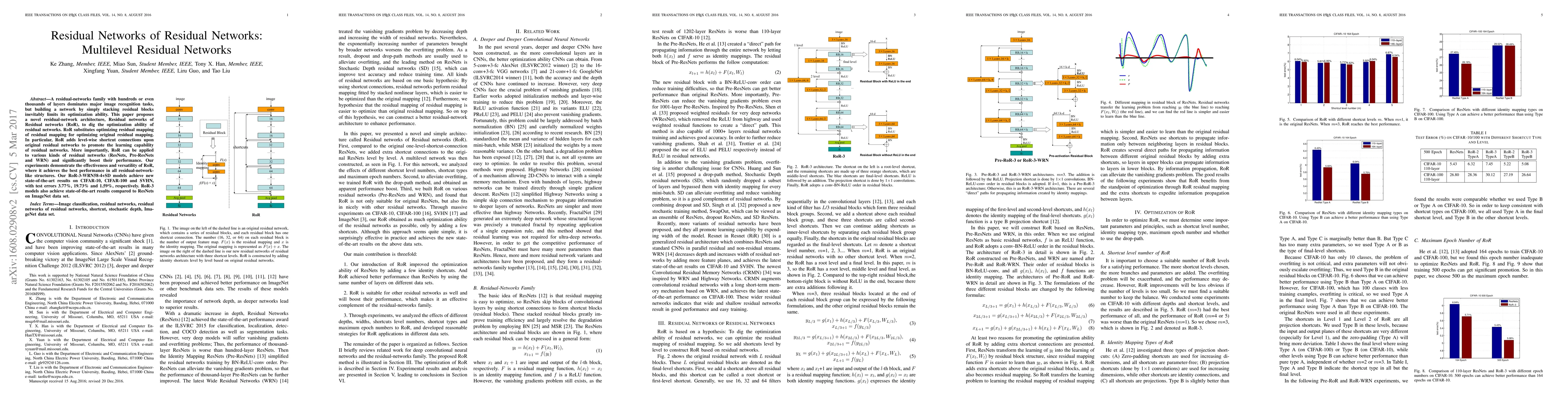 This paper introduces Residual networks of Residual networks (RoR), a novel architecture that enhances the optimization and performance of deep residual networks by adding level-wise shortcut connections. RoR achieves state-of-the-art results on CIFAR and ImageNet datasets, demonstrating its effectiveness across various residual network types.