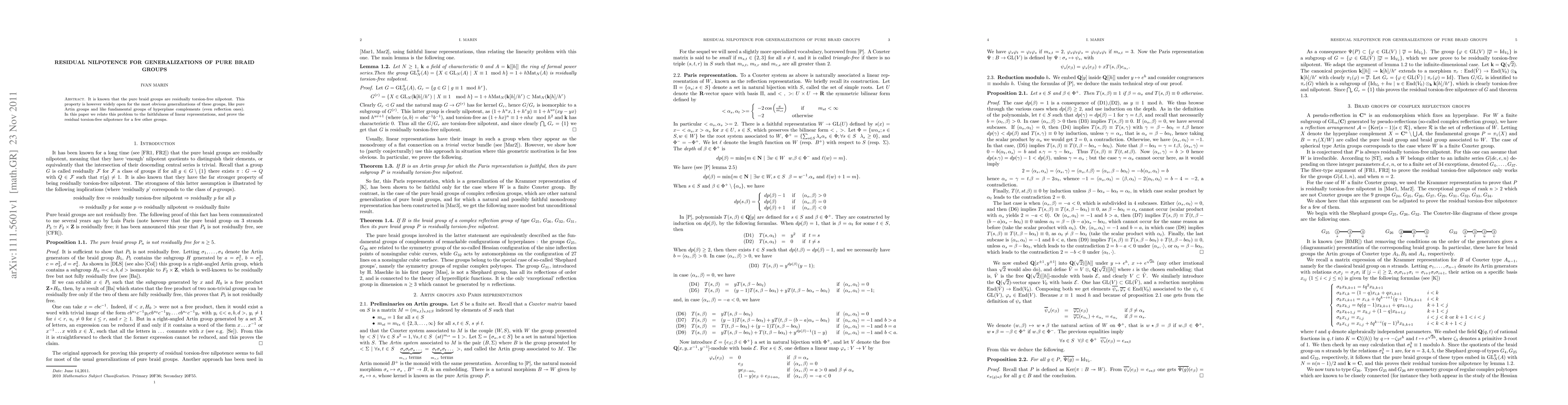 This paper investigates the residual torsion-free nilpotence property in generalizations of pure braid groups, such as pure Artin groups and fundamental groups of hyperplane complements. It establishes this property for certain groups by linking it to the faithfulness of their linear representations.