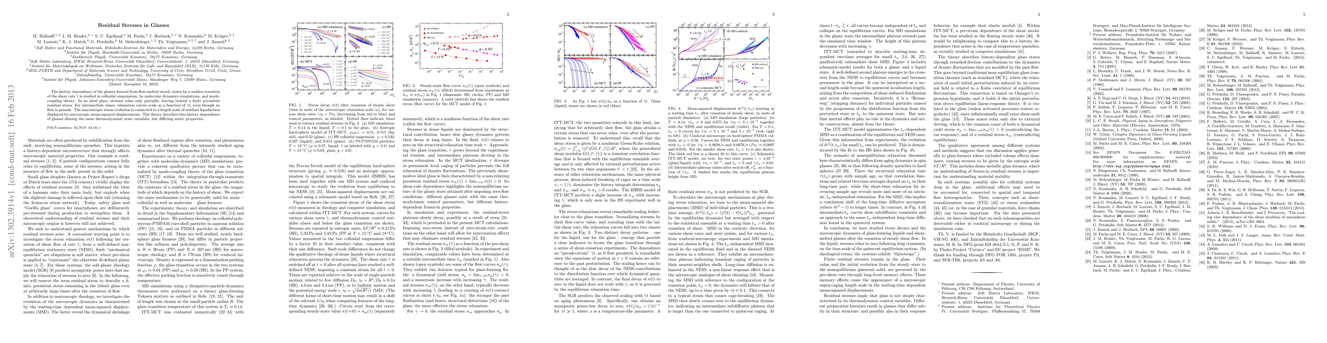Researchers studied how glasses form from sudden stops in a flow, finding that residual stresses remain even after relaxation, affecting the glass's microscopic and macroscopic properties. Their theory explains how different glasses with the same thermodynamic state but varying static properties behave.