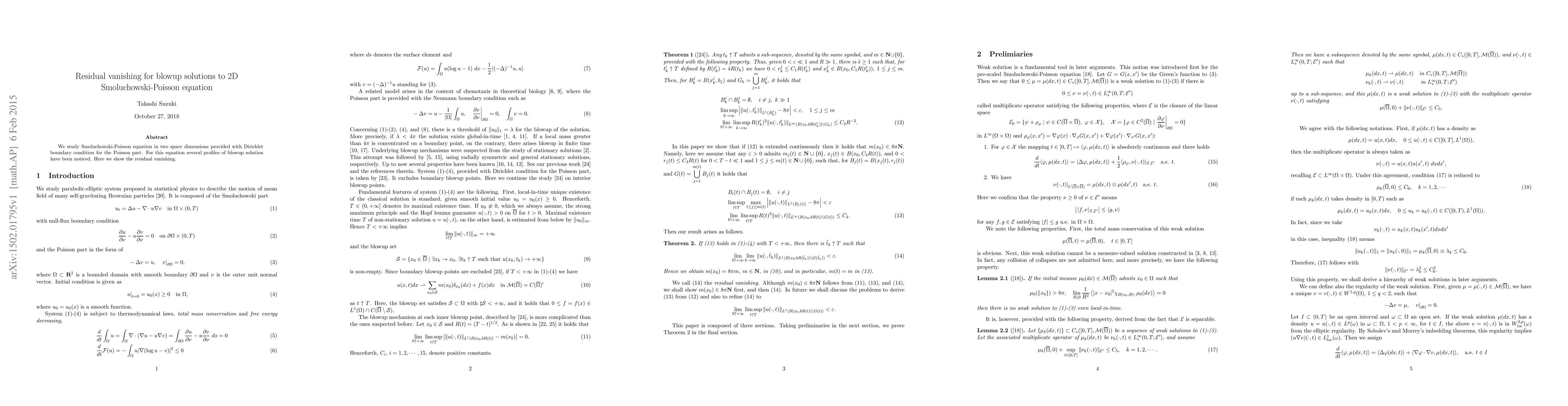 Summary: This paper investigates the Smoluchowski-Poisson equation in two dimensions with Dirichlet boundary conditions, focusing on the profiles of blowup solutions. The study demonstrates the phenomenon of residual vanishing in these solutions.