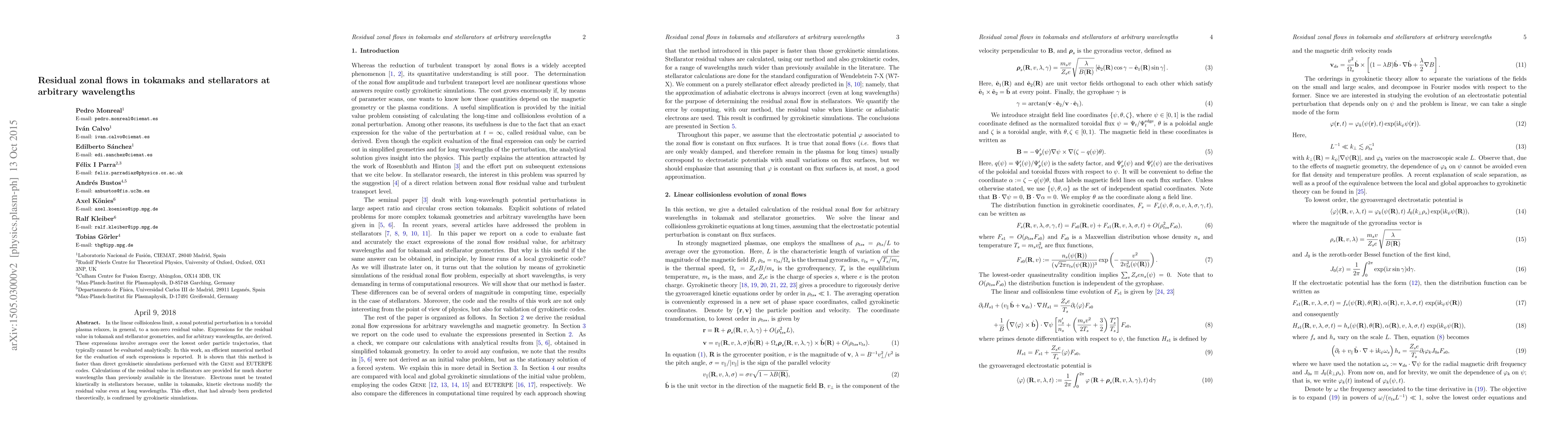 This paper derives expressions for residual zonal flows in tokamaks and stellarators at arbitrary wavelengths, showing that kinetic electrons significantly affect residual values in stellarators. An efficient numerical method is introduced to evaluate these expressions, which outperforms direct gyrokinetic simulations.