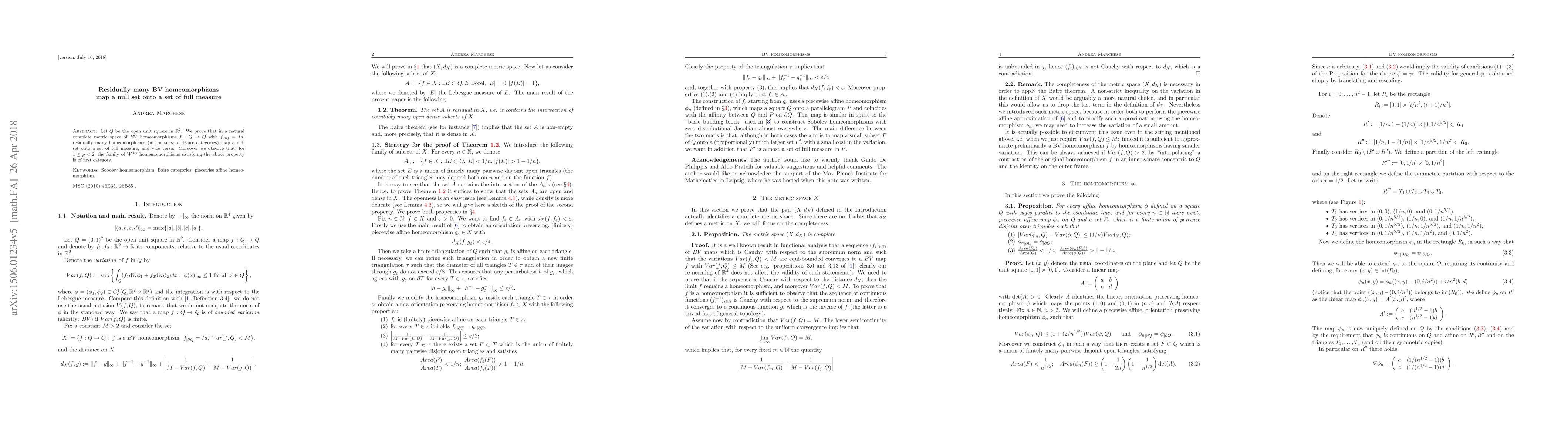 Let $Q=(0,1)^2$ be the unit square in $\mathbb{R}^2$. We prove that in a suitable complete metric space of $BV$ homeomorphisms $f:Q\rightarrow Q$ with $f_{|\partial Q}=Id$, the generical homeomorphism (in the sense of Baire categories) maps a null set in a set of full measure and vice versa. Moreover we observe that, for $1\leq p<2$, in the most reasonable complete metric space for such problem, the family of $W^{1,p}$ homemomorphisms satisfying the above property is of first category, instead.