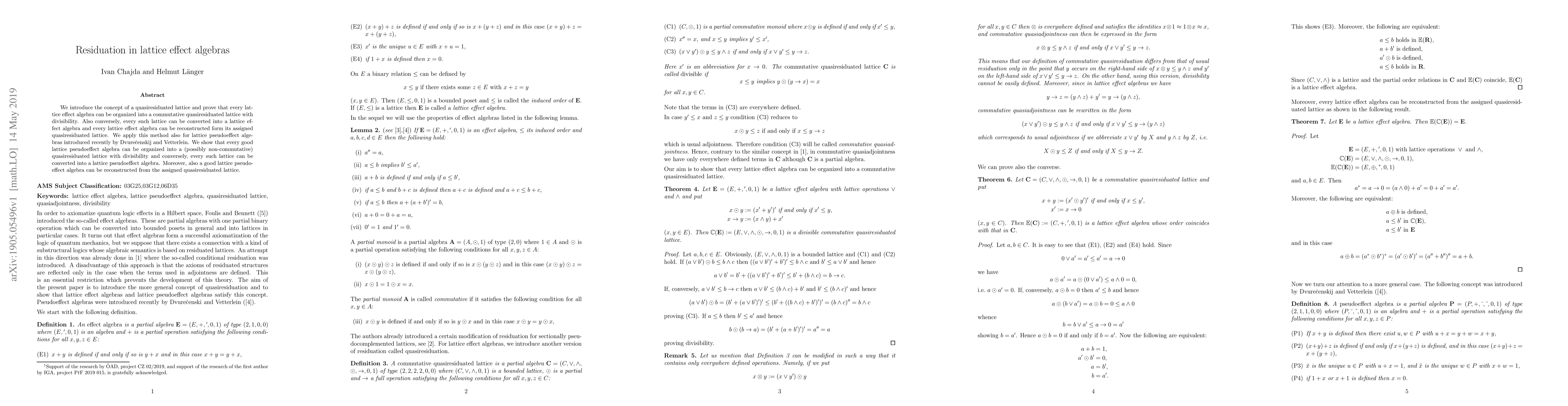 This paper introduces quasiresiduated lattices and demonstrates that every lattice effect algebra can be structured as a commutative quasiresiduated lattice with divisibility. Conversely, any such lattice can be converted back into a lattice effect algebra, and the original algebra can be reconstructed from its quasiresiduated lattice. The method also applies to lattice pseudoeffect algebras, showing similar properties for good lattice pseudoeffect algebras.