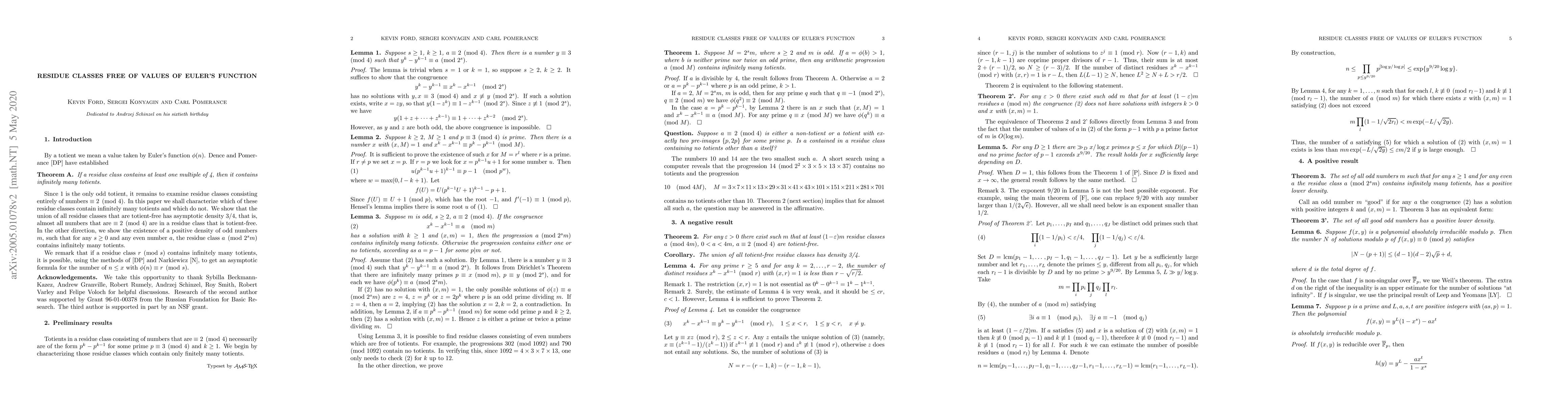 This paper characterizes residue classes that are free of values of Euler's function (totients), demonstrating that almost all numbers congruent to 2 modulo 4 fall into such totient-free classes. It also proves the existence of a positive density of odd numbers that, when combined with powers of 2, contain infinitely many totients.