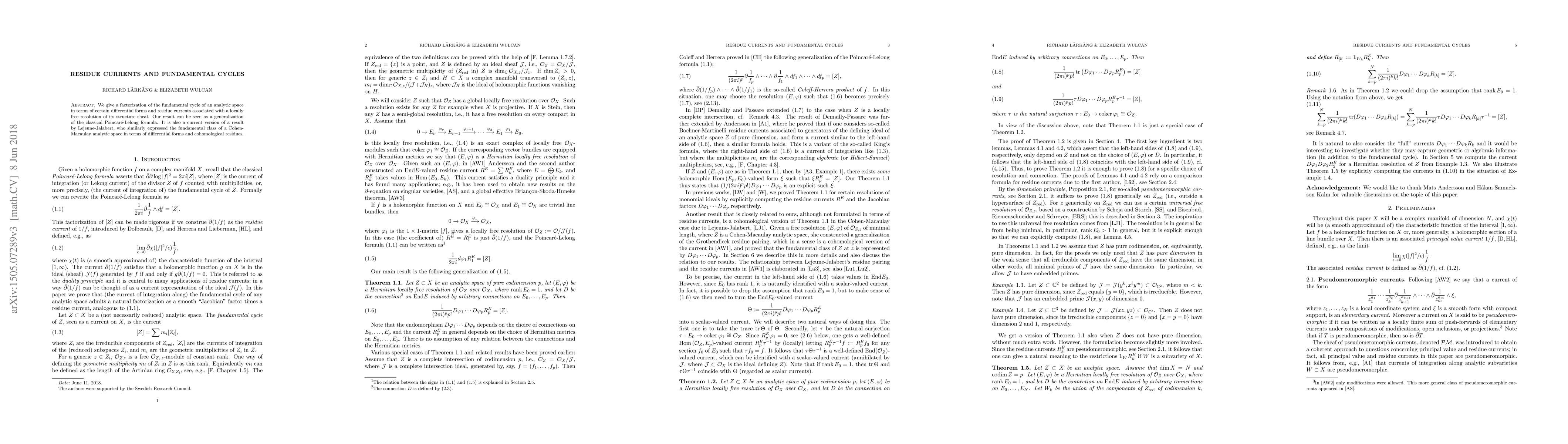 This paper presents a factorization of the fundamental cycle of an analytic space using differential forms and residue currents linked to a locally free resolution of its structure sheaf, extending the classical Poincaré-Lelong formula and Lejeune-Jalabert's result for Cohen-Macaulay analytic spaces.