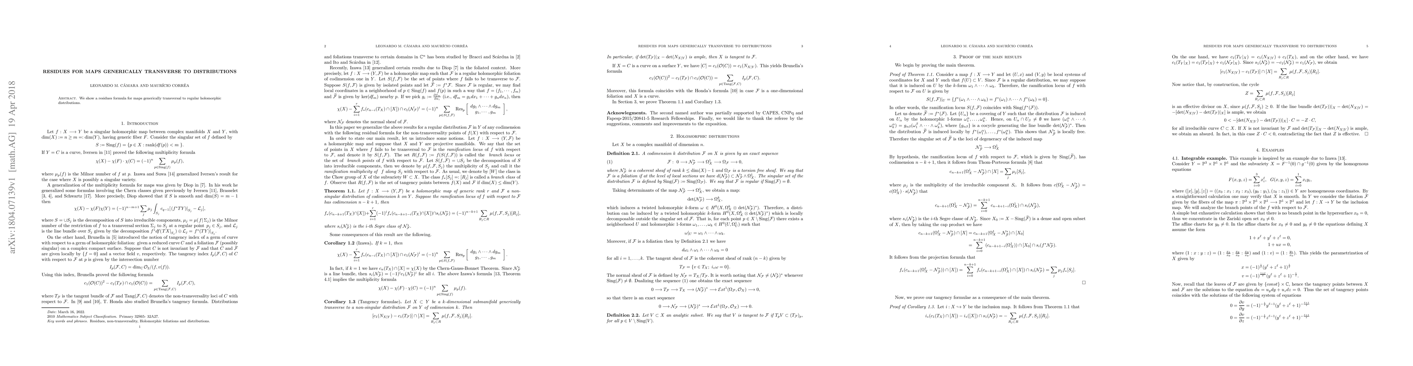 Summary: The paper presents a residues formula for maps that are generally transverse to regular holomorphic distributions, providing a significant result for understanding the behavior of such maps.