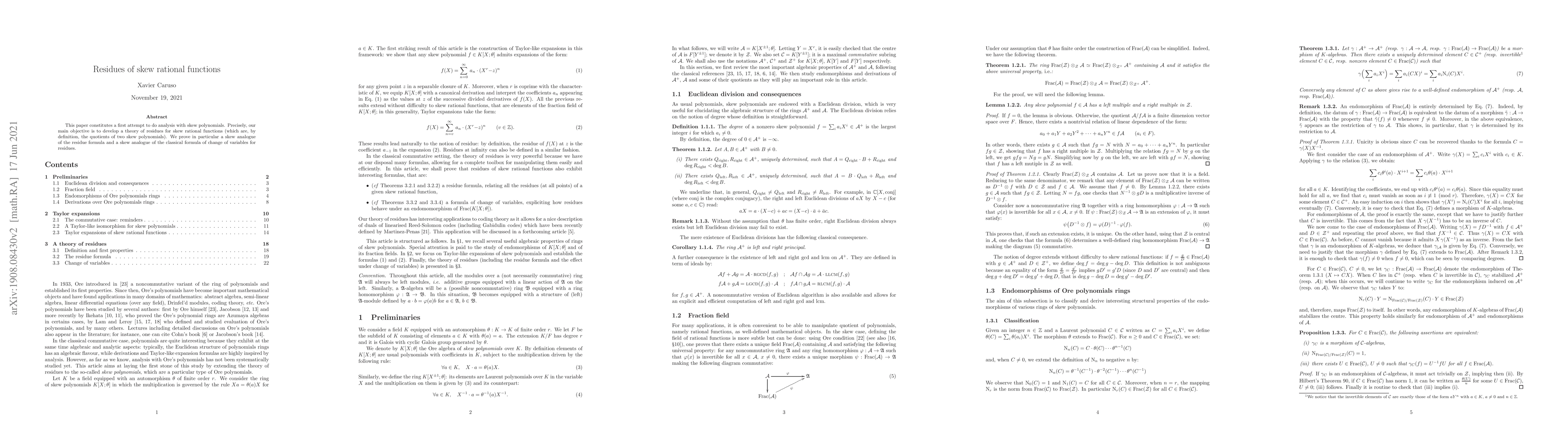 This paper introduces a theory of residues for skew rational functions, proving a skew analogue of the residue formula and a change of variables formula. It marks the beginning of analysis with skew polynomials.