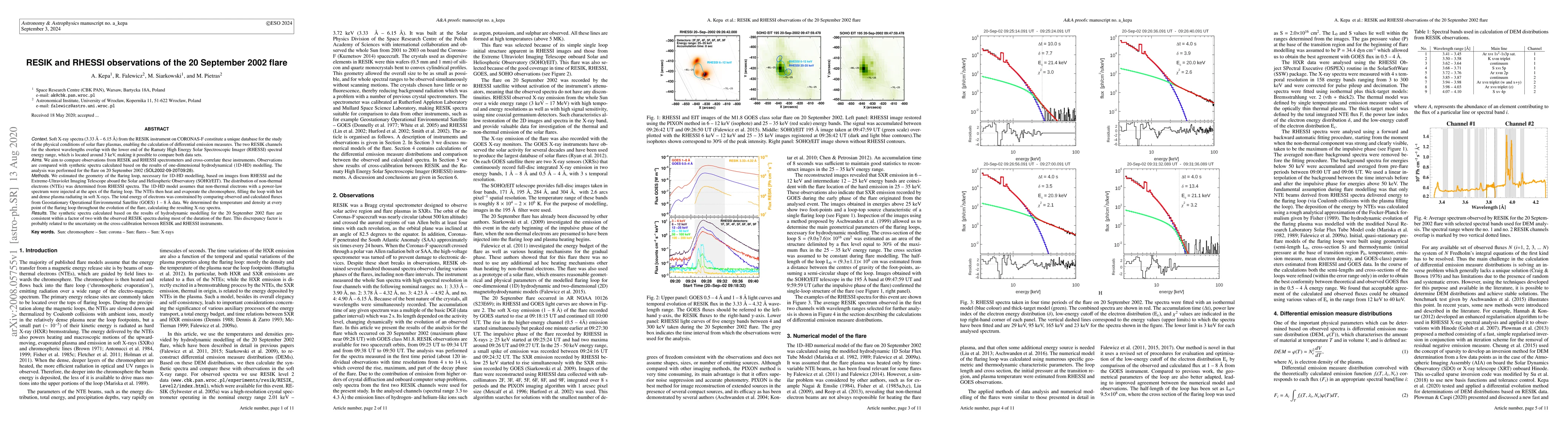 This study compares observations from RESIK and RHESSI spectrometers during the 20 September 2002 solar flare, using 1D-HD modeling. Results show synthetic spectra from the model align well with RESIK observations within a factor of two, indicating successful cross-correlation and validation of the 1D-HD model for flare plasma conditions. Discrepancies are attributed to cross-calibration uncertainties between the two instruments.