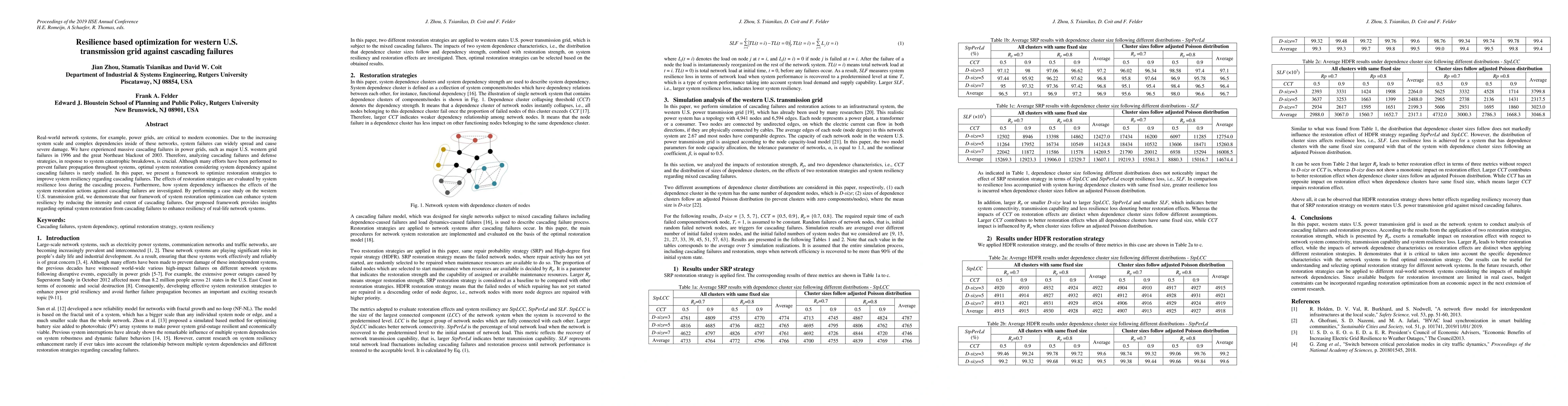 A simulation-based approach was used to analyze cascading failures in a western states U.S. power transmission grid.