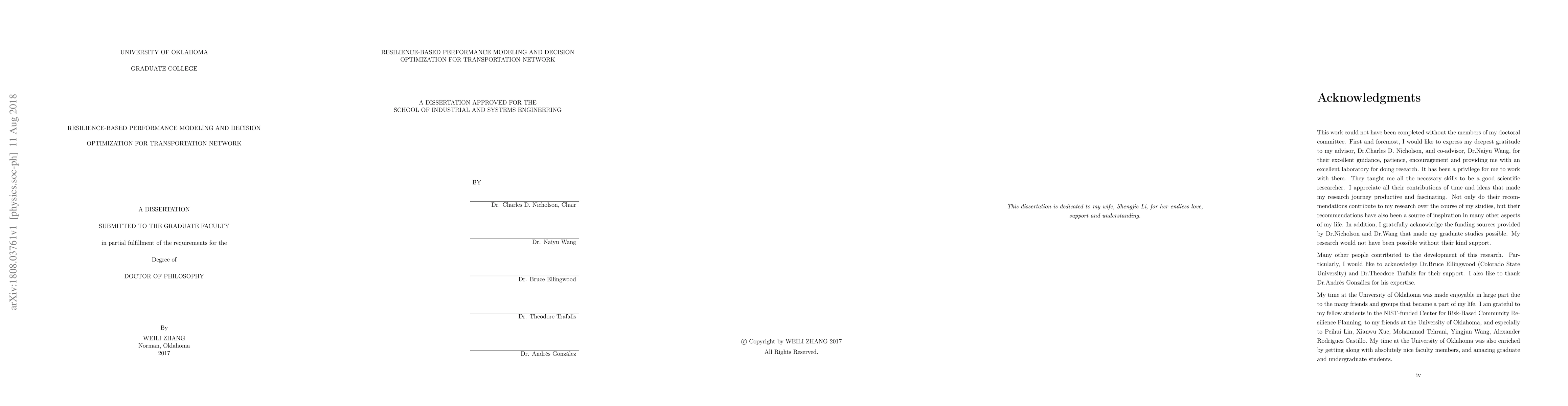This research introduces a resilience-based framework for transportation network planning, proposing a new performance metric, WIPW, to compare risk mitigation strategies. It also develops a methodology for optimizing post-disaster recovery scheduling to minimize recovery time and optimize recovery trajectory, aiming to reduce economic losses from network disruptions.