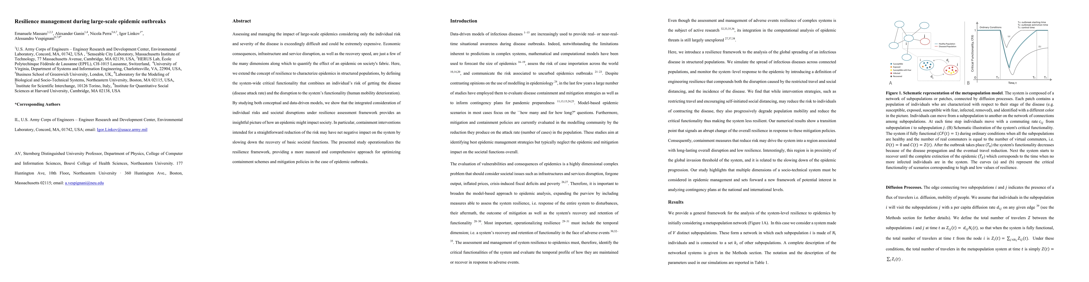 This paper develops a resilience management framework to assess the impact of large-scale epidemics, integrating individual disease risk with societal disruptions, and demonstrates that containment strategies may inadvertently slow societal recovery. The study provides a comprehensive approach for optimizing epidemic response policies.