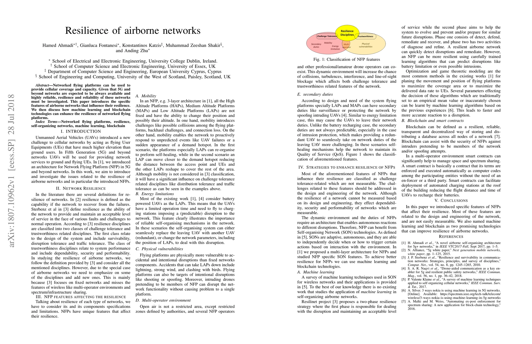 This paper explores the resilience of airborne networks, emphasizing their unique features and how machine learning and blockchain technologies can bolster their reliability and availability, crucial for future 5G and beyond networks.