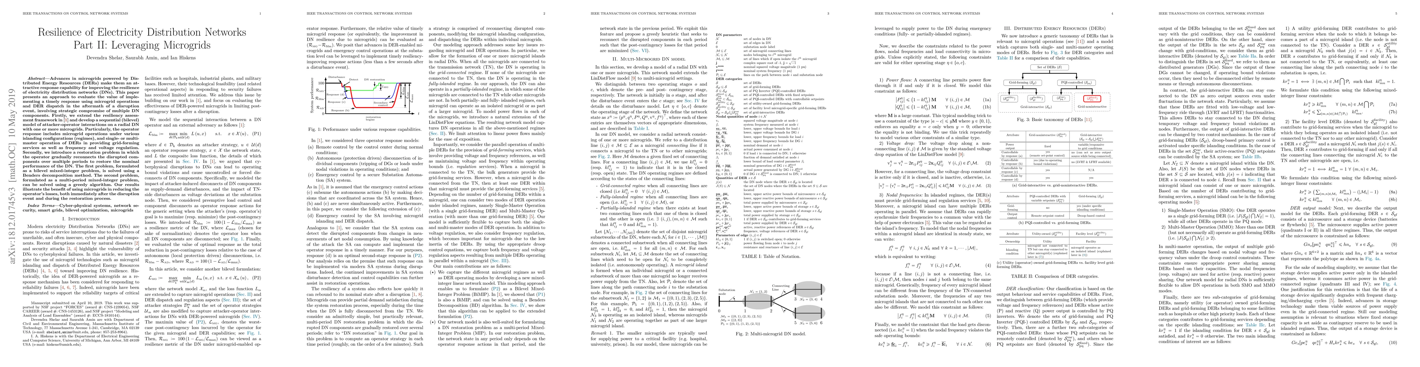 This paper evaluates the resilience of electricity distribution networks using microgrids and DERs, developing a bilevel model for assessing operator response post-disruption. It demonstrates that microgrids can significantly reduce operator losses during both immediate recovery and restoration phases.