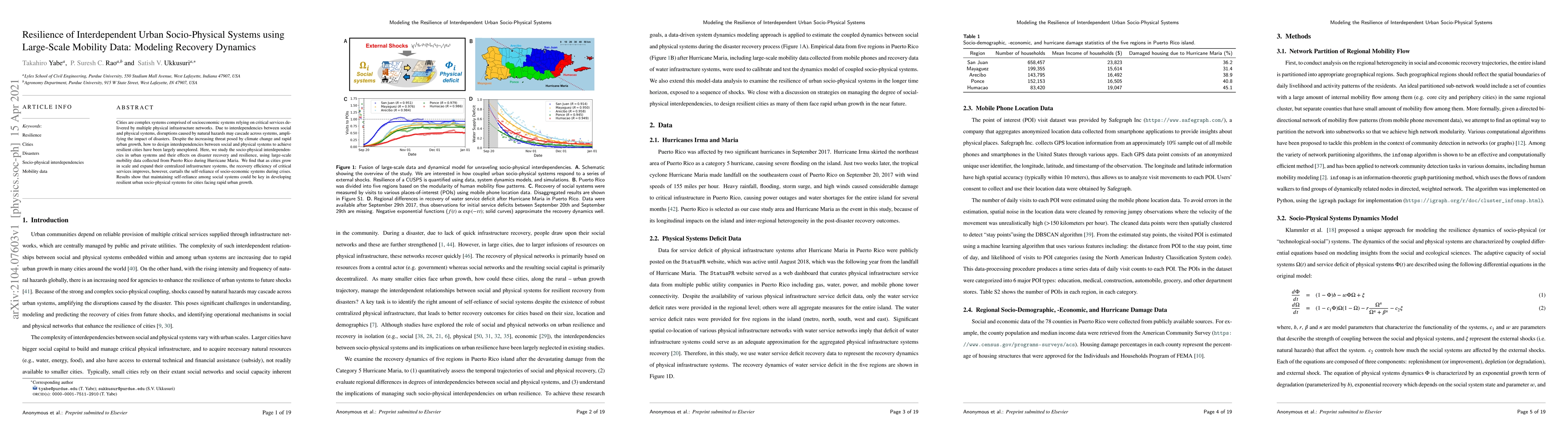 This paper investigates how socio-physical interdependencies in urban systems affect disaster recovery using large-scale mobility data from Puerto Rico post-Hurricane Maria. It finds that while larger infrastructure improves recovery efficiency, it reduces socio-economic self-reliance, suggesting that maintaining self-reliance is crucial for resilient urban development.