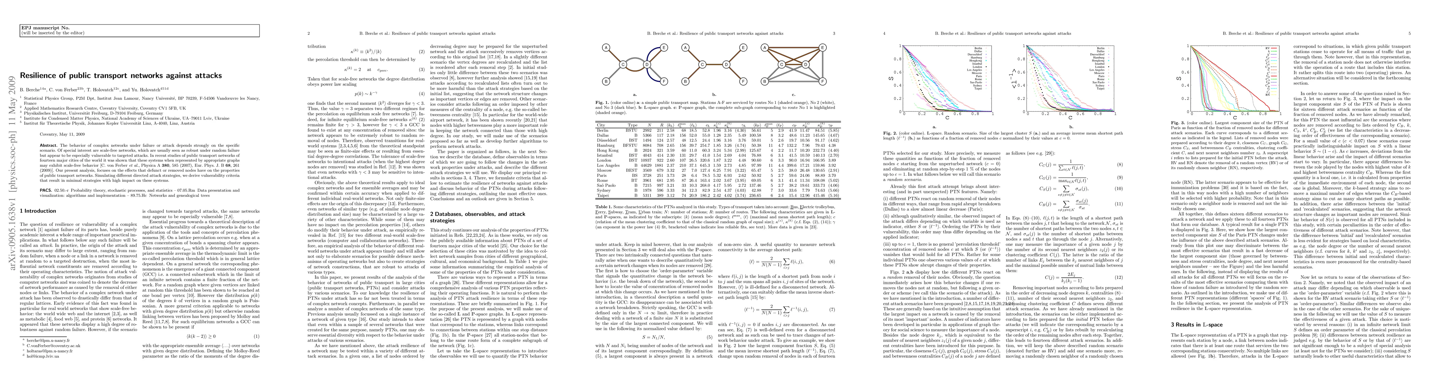 The study examines public transport networks (PTNs) of fourteen major cities, analyzing their resilience against attacks using different scenarios, including random failure and targeted destruction based on node characteristics like degree, betweenness centrality, and stress centrality.