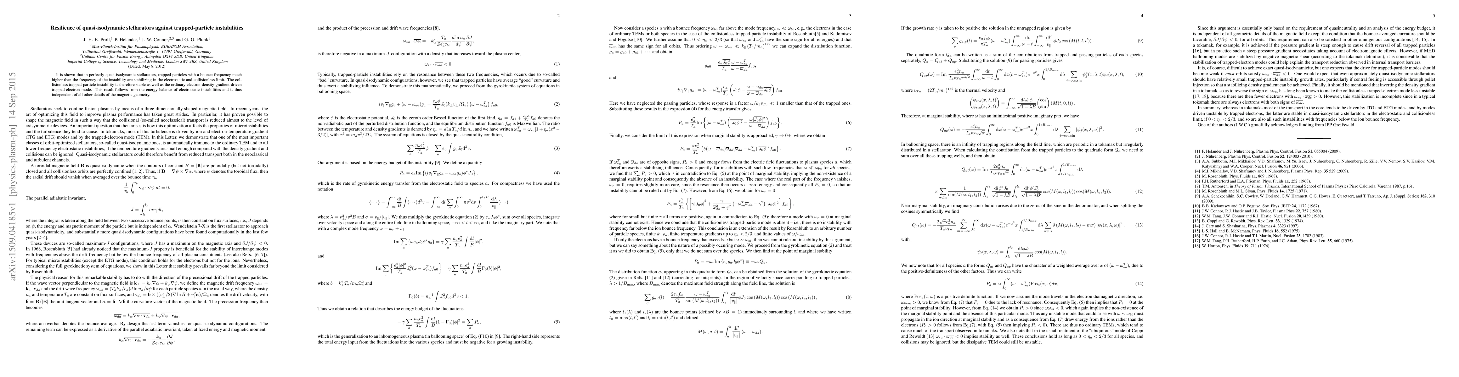 Summary: Perfectly quasi-isodynamic stellarators exhibit resilience against trapped-particle instabilities due to the stabilizing effect of high-frequency trapped particles, ensuring stability in the electrostatic and collisionless limit, independent of the magnetic geometry.