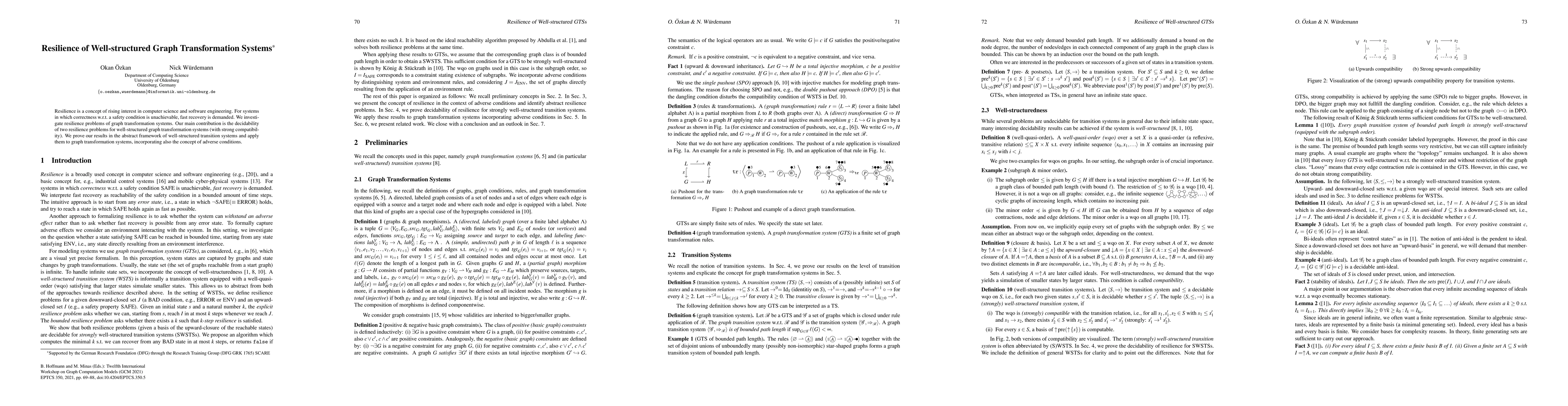 Resilience is a concept of rising interest in computer science and software engineering. For systems in which correctness w.r.t. a safety condition is unachievable, fast recovery is demanded. We investigate resilience problems of graph transformation systems. Our main contribution is the decidability of two resilience problems for well-structured graph transformation systems (with strong compatibility). We prove our results in the abstract framework of well-structured transition systems and apply them to graph transformation systems, incorporating also the concept of adverse conditions.