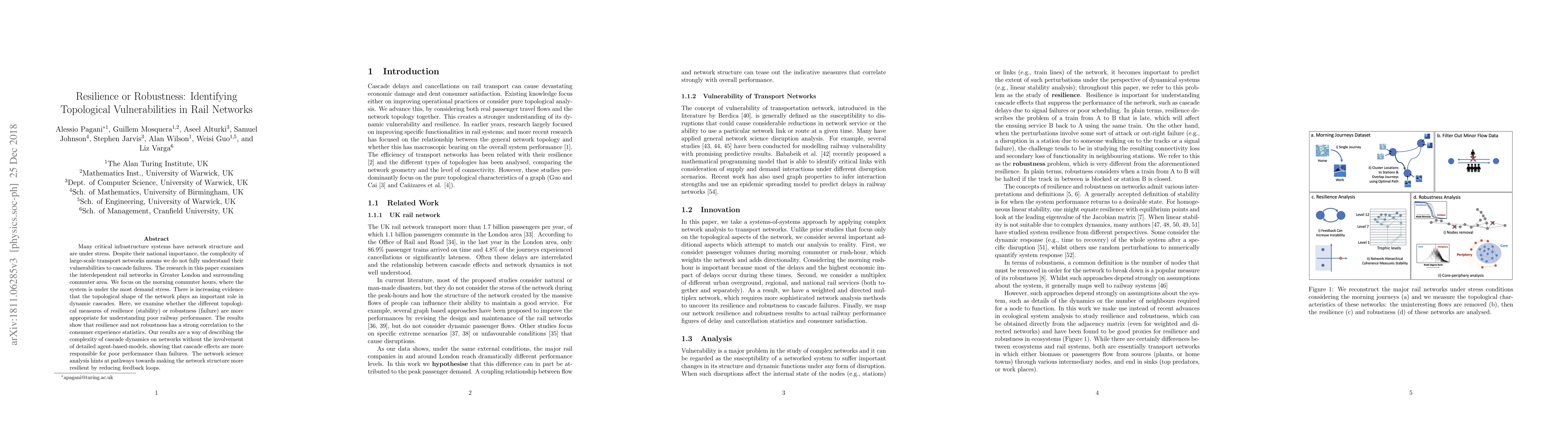 This paper investigates the topological vulnerabilities of Greater London's rail network during peak commuter hours, finding that resilience correlates strongly with consumer experience, rather than robustness. The study suggests that reducing feedback loops could enhance network resilience without detailed agent-based models.