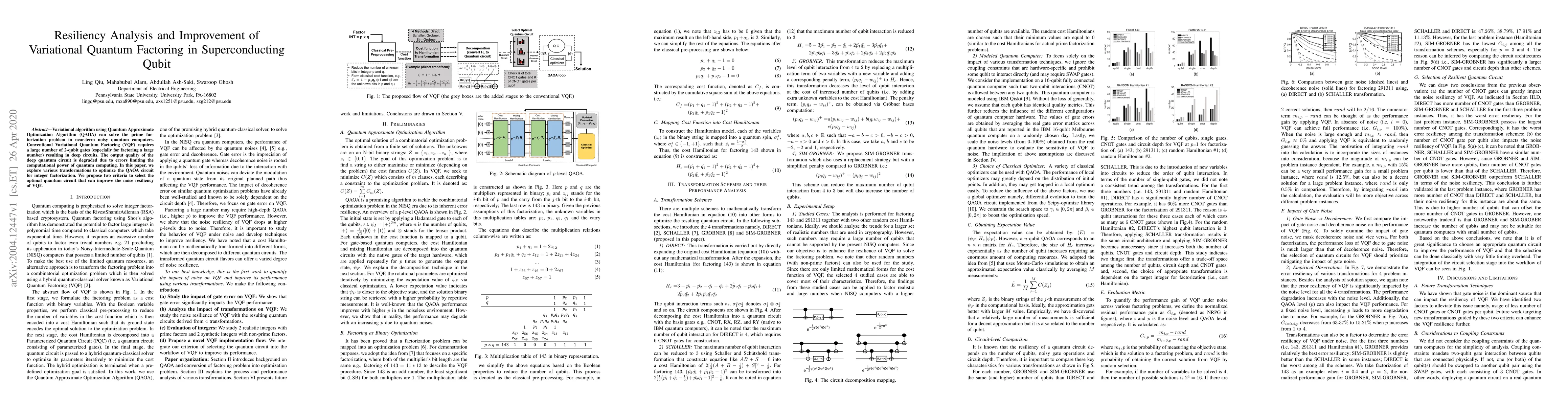 This paper investigates optimizing the Variational Quantum Factoring (VQF) algorithm using Quantum Approximate Optimization Algorithm (QAOA) to enhance its noise resiliency in near-term noisy quantum computers. The authors propose transformations and criteria to select the optimal quantum circuit, improving the algorithm's performance for prime factorization.