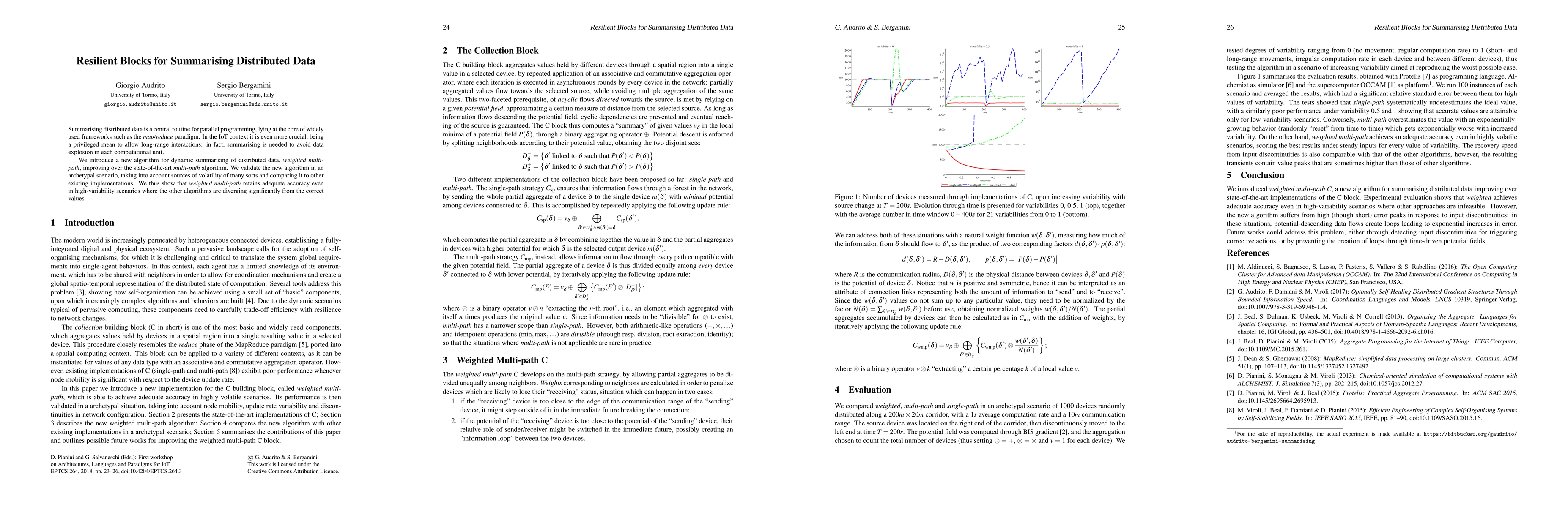 Summarising distributed data is a central routine for parallel programming, lying at the core of widely used frameworks such as the map/reduce paradigm. In the IoT context it is even more crucial, being a privileged mean to allow long-range interactions: in fact, summarising is needed to avoid data explosion in each computational unit. We introduce a new algorithm for dynamic summarising of distributed data, weighted multi-path, improving over the state-of-the-art multi-path algorithm. We validate the new algorithm in an archetypal scenario, taking into account sources of volatility of many sorts and comparing it to other existing implementations. We thus show that weighted multi-path retains adequate accuracy even in high-variability scenarios where the other algorithms are diverging significantly from the correct values.