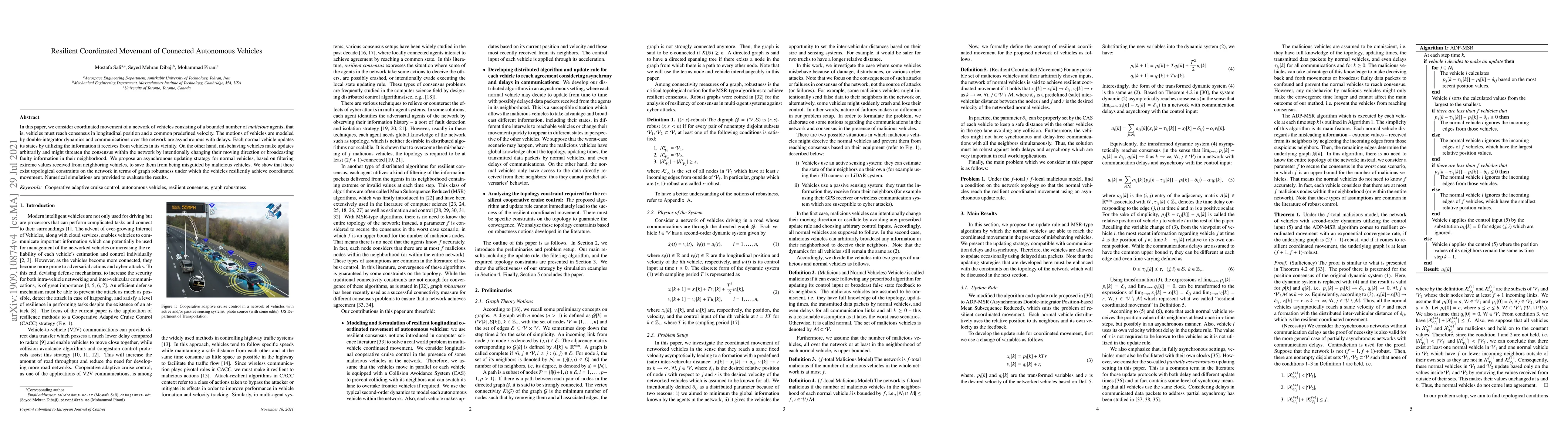 Researchers develop a strategy to prevent coordinated movement of autonomous vehicles from being disrupted by malicious agents, showing that certain network topologies can achieve resilient consensus under asynchronous communication with delays.