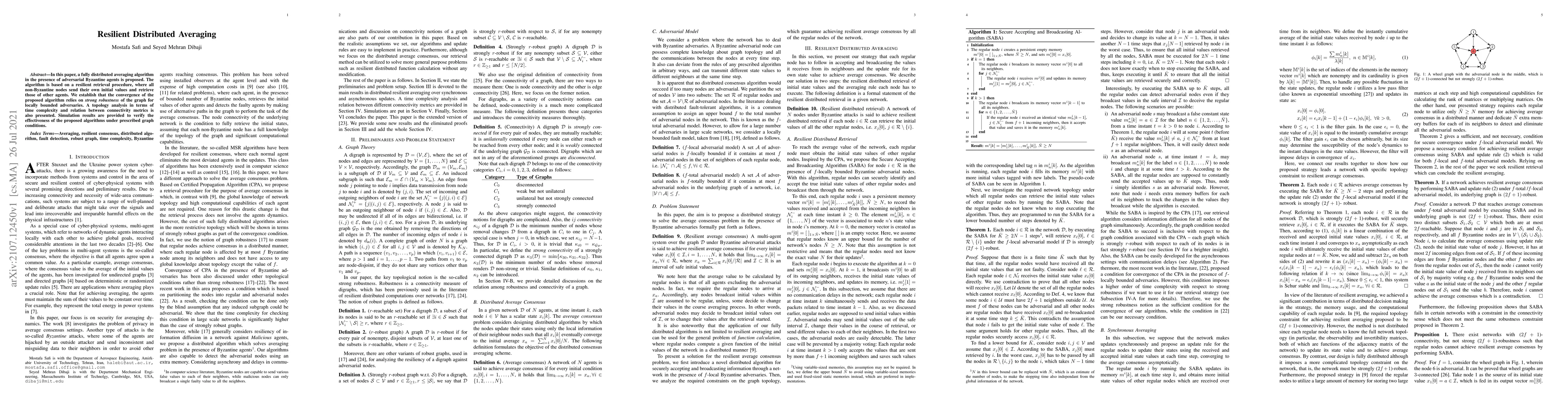 This paper proposes a resilient distributed averaging algorithm for environments with Byzantine agents, ensuring convergence through a robust retrieval procedure. The algorithm's effectiveness is verified through simulations under various graph conditions, highlighting its strong robustness and time complexity analysis.