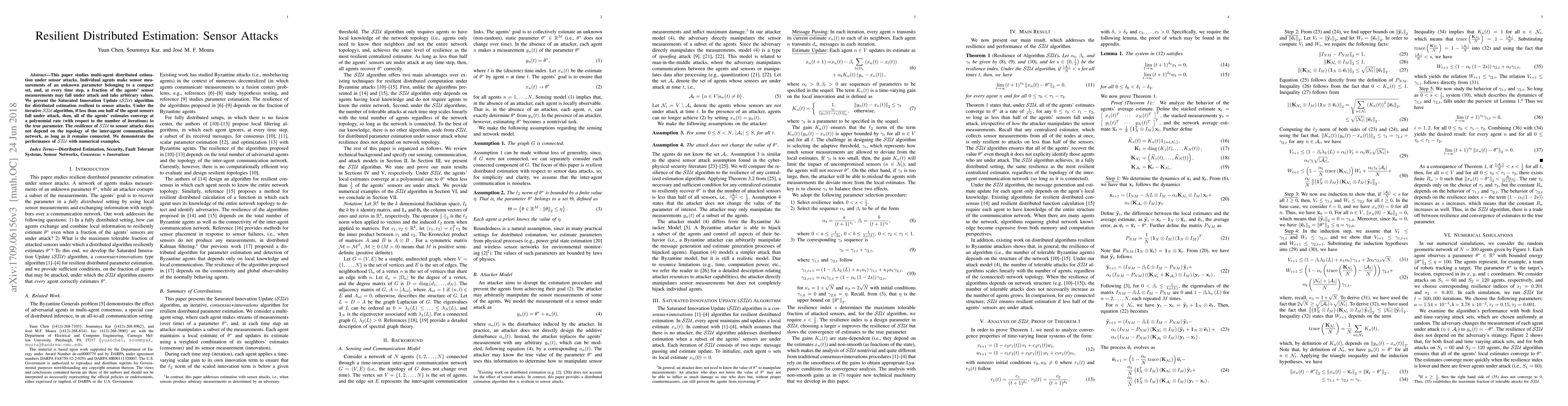 This paper studies multi-agent distributed estimation under sensor attacks. Individual agents make sensor measurements of an unknown parameter belonging to a compact set, and, at every time step, a fraction of the agents' sensor measurements may fall under attack and take arbitrary values. We present the Saturated Innovation Update ($\mathcal{SIU}$) algorithm for distributed estimation resilient to sensor attacks. Under the iterative $\mathcal{SIU}$ algorithm, if less than one half of the agent sensors fall under attack, then, all of the agents' estimates converge at a polynomial rate (with respect to the number of iterations) to the true parameter. The resilience of $\mathcal{SIU}$ to sensor attacks does not depend on the topology of the inter-agent communication network, as long as it remains connected. We demonstrate the performance of $\mathcal{SIU}$ with numerical examples.