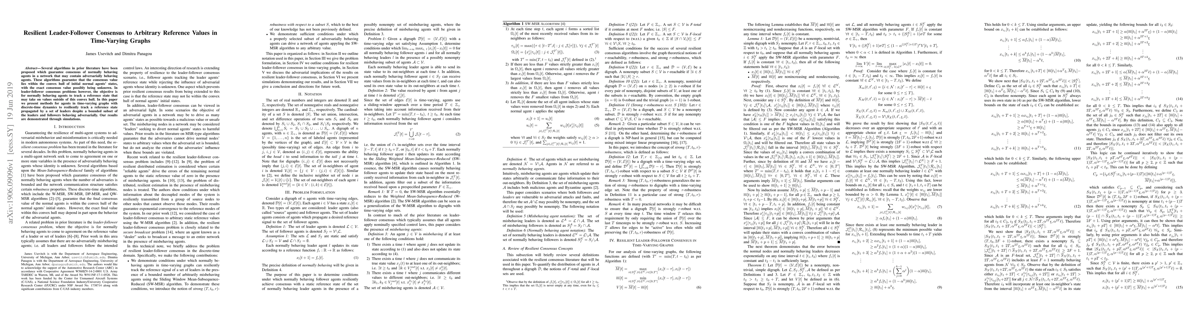 This paper presents algorithms for leader-follower consensus in time-varying graphs where agents must track reference values outside the convex hull of initial states, even when some leaders and followers act adversarially. Simulation results demonstrate the resilience of the proposed methods.