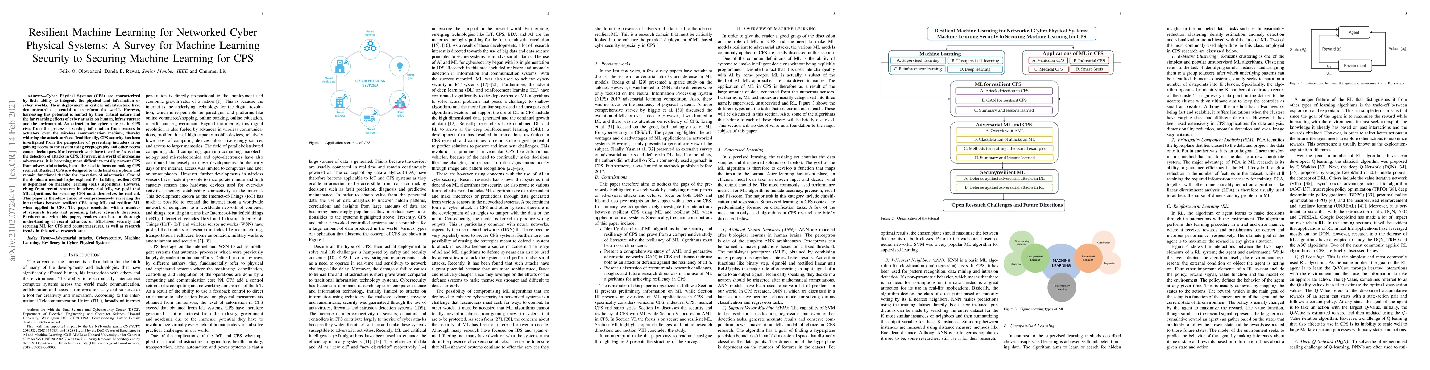 This research paper surveys the intersection of machine learning security and securing cyber-physical systems, focusing on making CPS resilient to attacks. It aims to provide a comprehensive understanding of recent advances in ML-based security and future research directions for safeguarding CPS.