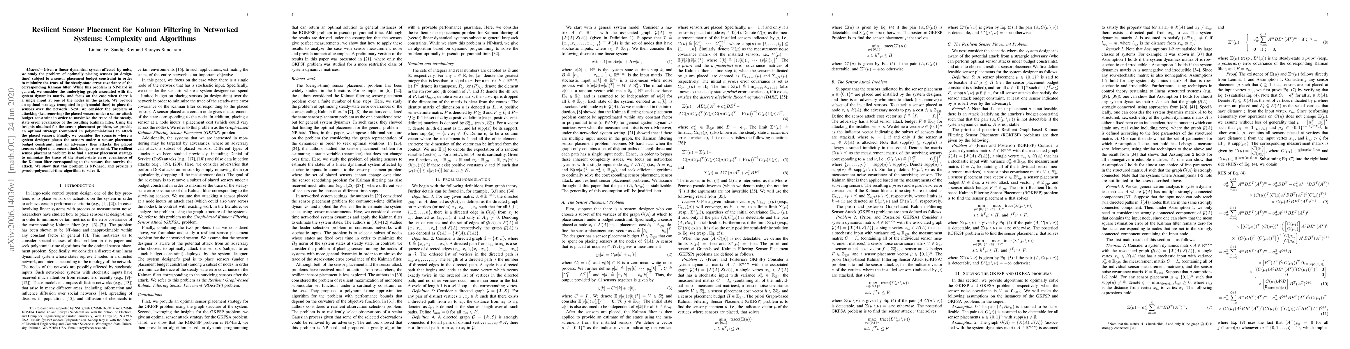 Given a linear dynamical system affected by noise, we study the problem of optimally placing sensors (at design-time) subject to a sensor placement budget constraint in order to minimize the trace of the steady-state error covariance of the corresponding Kalman filter. While this problem is NP-hard in general, we consider the underlying graph associated with the system dynamics matrix, and focus on the case when there is a single input at one of the nodes in the graph. We provide an optimal strategy (computed in polynomial-time) to place the sensors over the network. Next, we consider the problem of attacking (i.e., removing) the placed sensors under a sensor attack budget constraint in order to maximize the trace of the steady-state error covariance of the resulting Kalman filter. Using the insights obtained for the sensor placement problem, we provide an optimal strategy (computed in polynomial-time) to attack the placed sensors. Finally, we consider the scenario where a system designer places the sensors under a sensor placement budget constraint, and an adversary then attacks the placed sensors subject to a sensor attack budget constraint. The resilient sensor placement problem is to find a sensor placement strategy to minimize the trace of the steady-state error covariance of the Kalman filter corresponding to the sensors that survive the attack. We show that this problem is NP-hard, and provide a pseudo-polynomial-time algorithm to solve it.