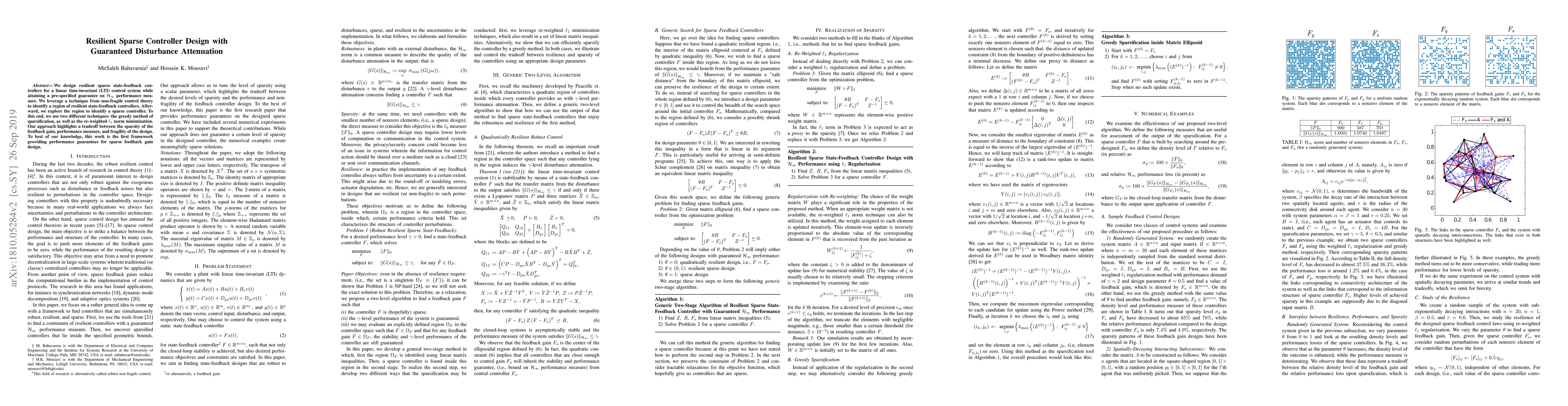 We design resilient sparse state-feedback controllers for a linear time-invariant (LTI) control system while attaining a pre-specified guarantee on ${\mathcal{H}}_\infty$ performance measure. We leverage a technique from non-fragile control theory to identify a region of resilient state-feedback controllers. Afterward, we explore the region to identify a sparse controller. To this end, we use two different techniques: the greedy method of sparsification, as well as the re-weighted $\ell_1$ norm minimization. Our approach highlights a tradeoff between the sparsity of the feedback gain, performance measure, and fragility of the design. To best of our knowledge, this work is the first framework providing performance guarantees for sparse feedback gain design.