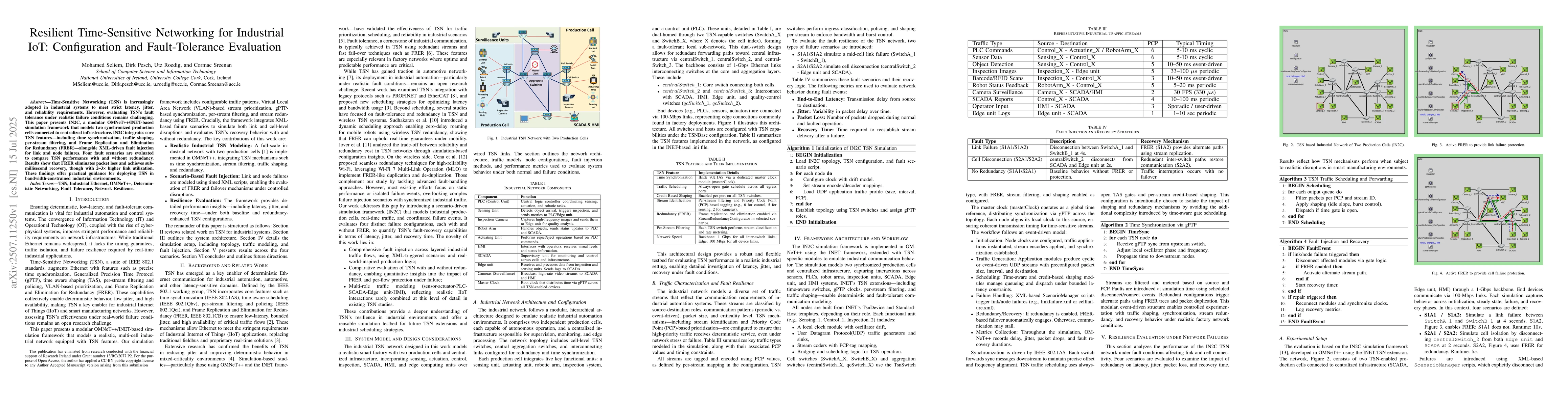 Time-Sensitive Networking (TSN) is increasingly adopted in industrial systems to meet strict latency, jitter, and reliability requirements. However, evaluating TSN's fault tolerance under realistic failure conditions remains challenging. This paper presents IN2C, a modular OMNeT++/INET-based simulation framework that models two synchronized production cells connected to centralized infrastructure. IN2C integrates core TSN features, including time synchronization, traffic shaping, per-stream filtering, and Frame Replication and Elimination for Redundancy (FRER), alongside XML-driven fault injection for link and node failures. Four fault scenarios are evaluated to compare TSN performance with and without redundancy. Results show that FRER eliminates packet loss and achieves submillisecond recovery, though with 2-3x higher link utilization. These findings offer practical guidance for deploying TSN in bandwidth-constrained industrial environments.